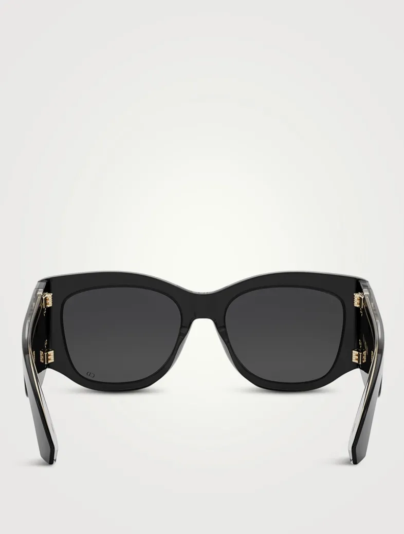The modern aesthetic DiorNuit S1I collection features a layered square acetate frame, and oversized temples embellished with a gold-tone Christian Dior Paris signature.