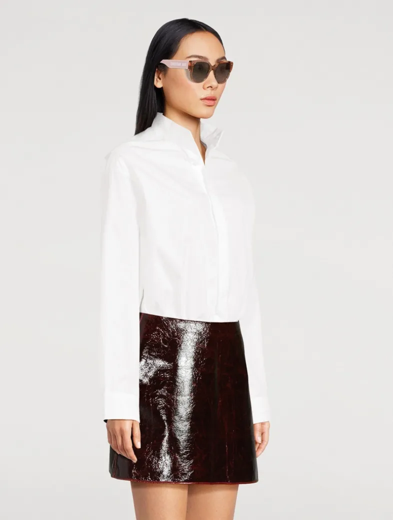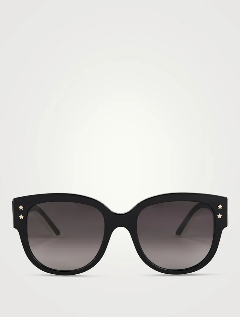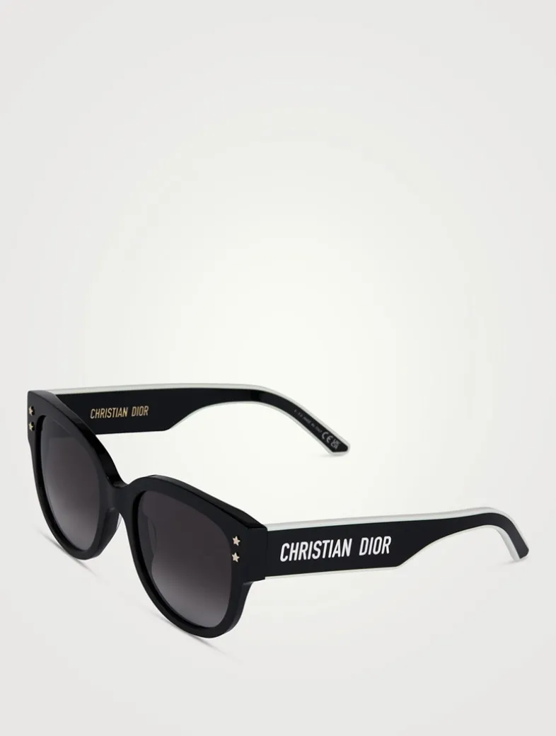DIOR’s DiorPacific eyewear line showcases modern, bold shapes. These acetate frames are adorned with gold-finish star details on the front and CHRISTIAN DIOR logo lettering along the temples.