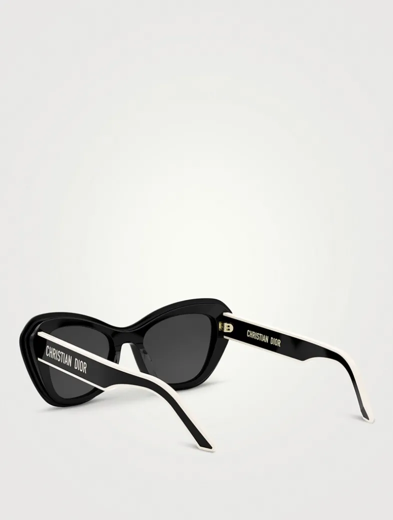 This acetate line is characterized by bold shapes with a statement colour combination. This butterfly style is detailed with contrasting logos and gold metal star pins.