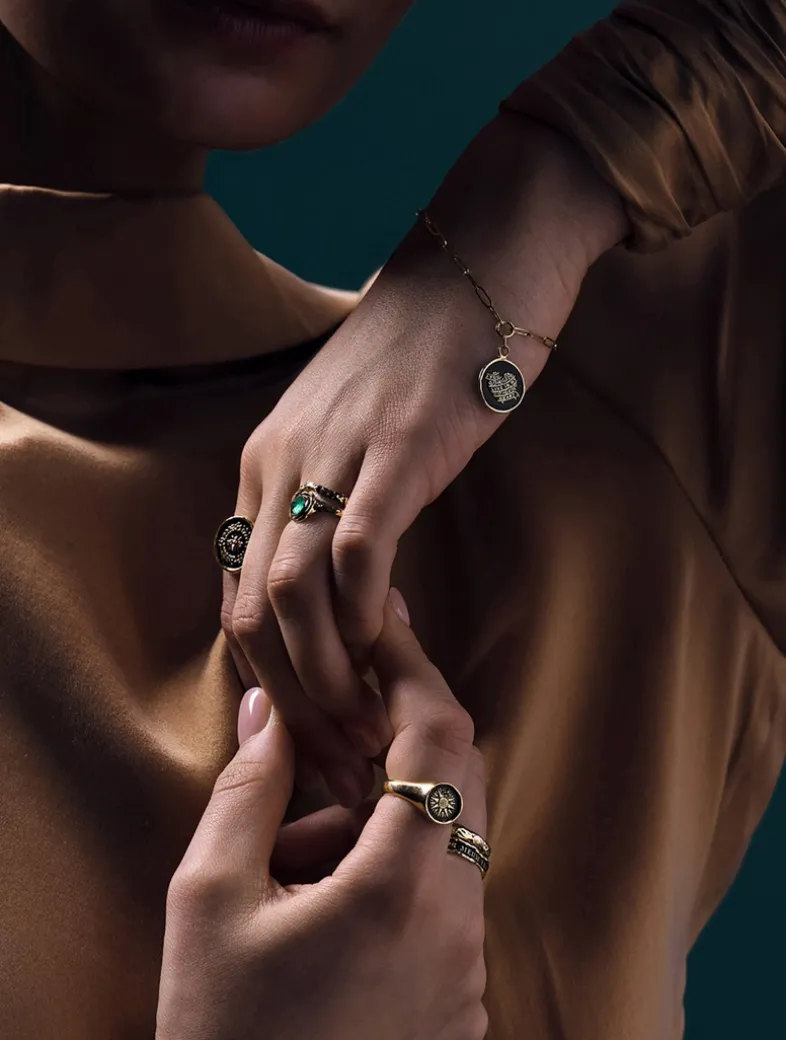 Set on a gleaming signet ring, this talisman centres on a compass rose—symbolizing guidance, direction, and staying true to the path that leads to your heart’s desires. Cast in 100% recycled 14k gold and handcrafted in Vancouver, Canada.