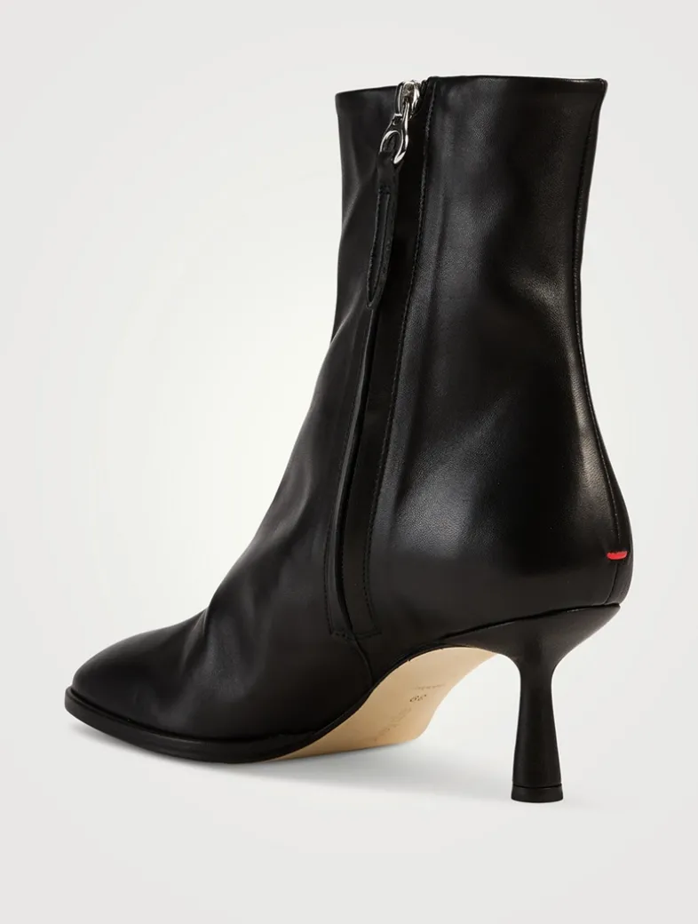 Dorothy is Aeyde’s iteration of chic stiletto ankle boots crafted from soft leather, featuring comfortable rounded toes and zippered closures. Aeyde footwear is made in Italy with generations of leather-specialist knowledge in family-run factories.