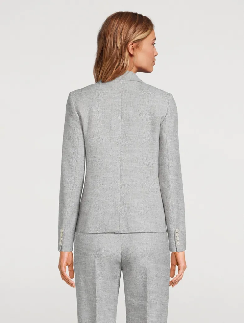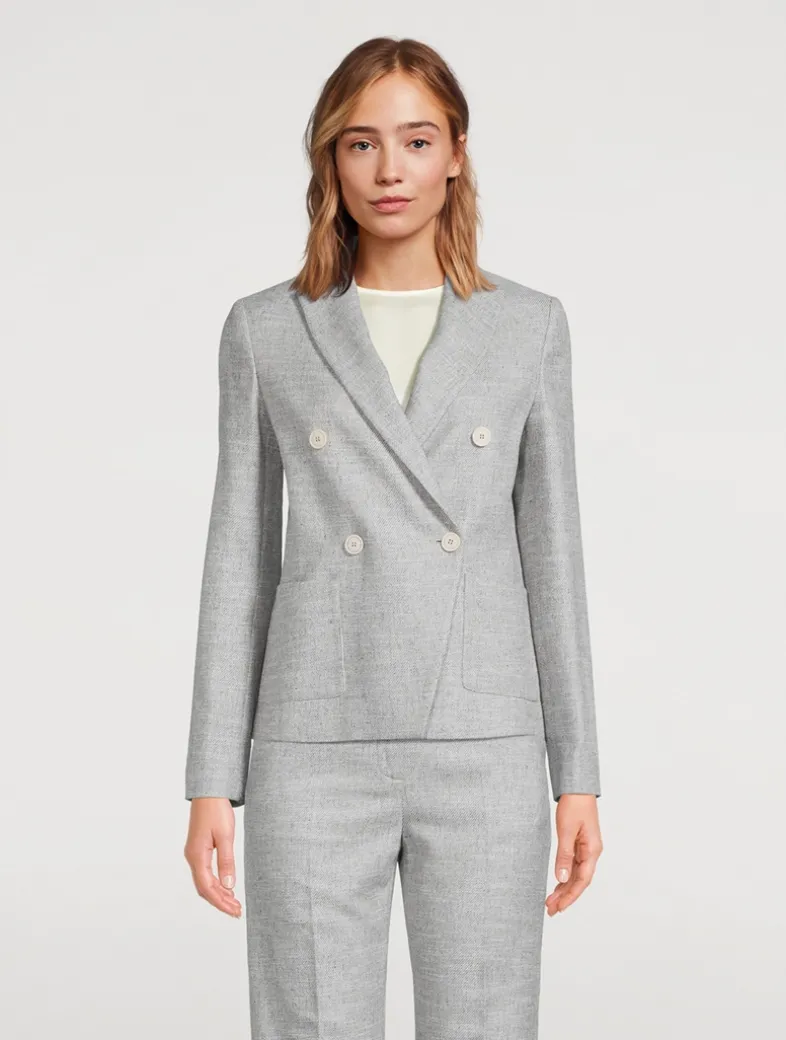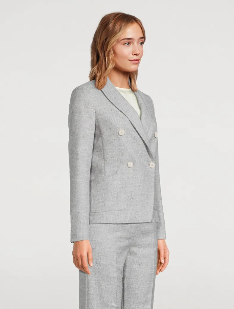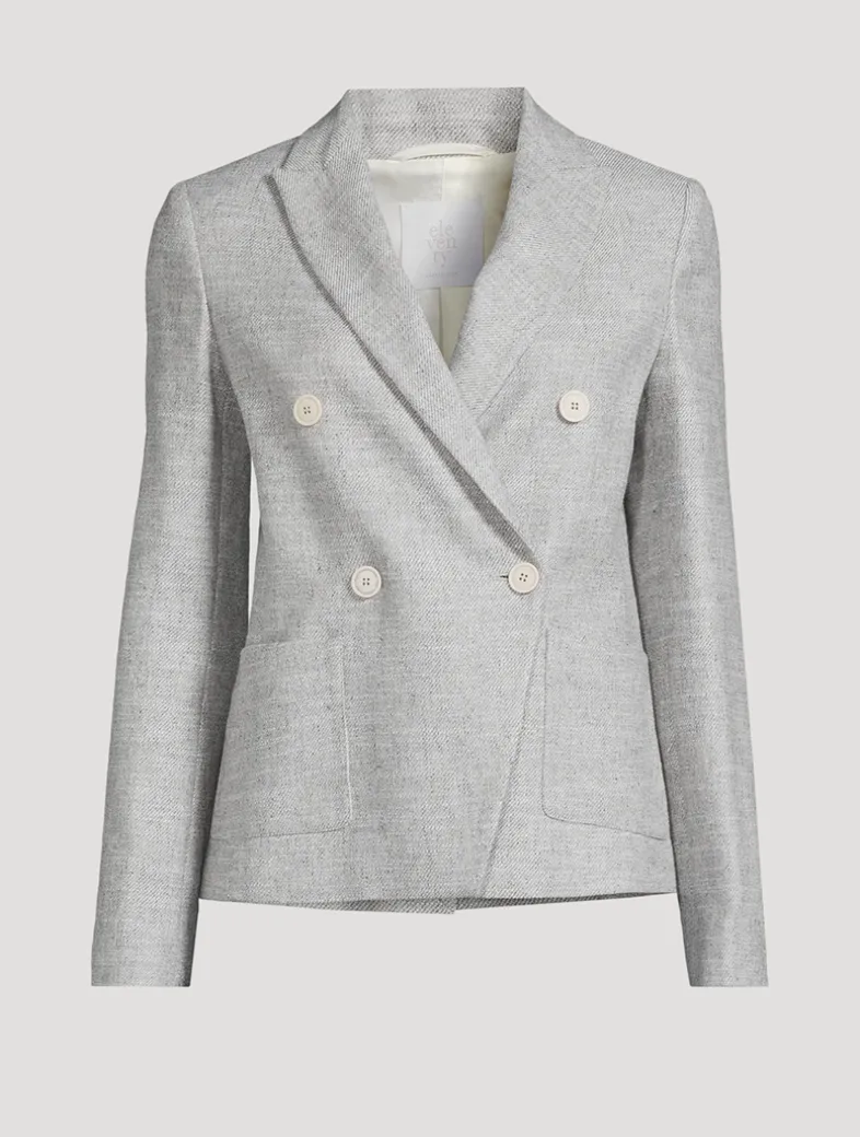 This schoolboy-style blazer is cropped to the hip to play with proportion. The double-breasted style is complete with peak lapels, and given a touch of casual cool with patch pockets.