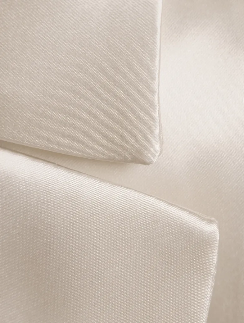 Made in Italy, this elegant sleeveless blazer is crafted from satin with a glossy finish. It is designed with a double-breasted button closure and flap pockets at the waist. A longline silhouette with side slits lends a fluttering feel to the piece.