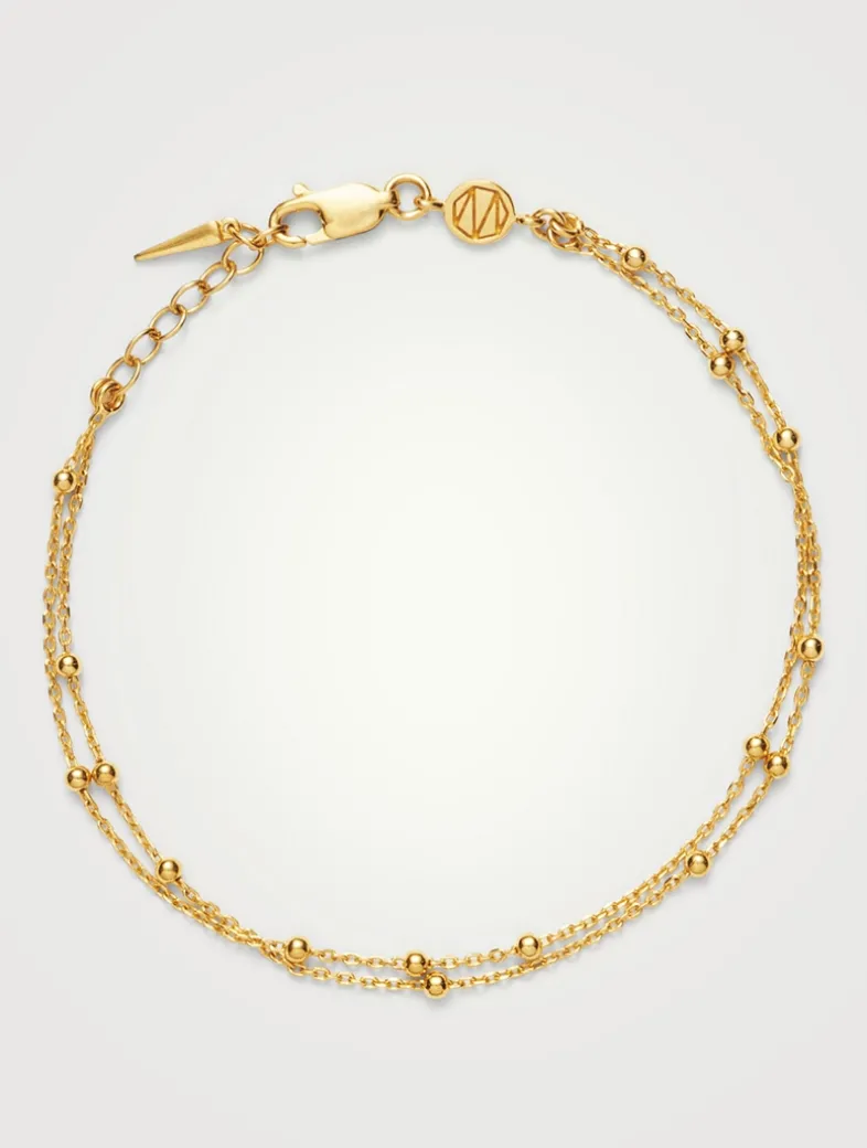 Upgrade your layers with a delicate addition. Featuring two chains with bobble detailing, this versatile bracelet easily fastens with a clasp. Two bracelets in one.