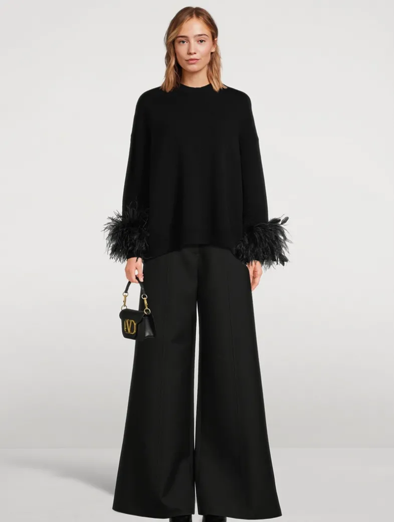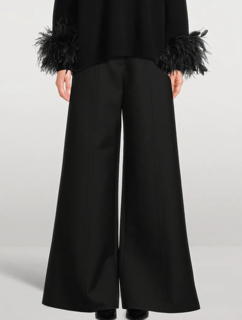 Made of luxe virgin wool with a hint of silk, these double compact drill trousers exude a refined simplicity. They are cut to sit high on the waist and fall to a relaxed wide leg.