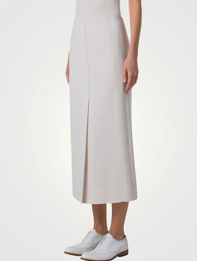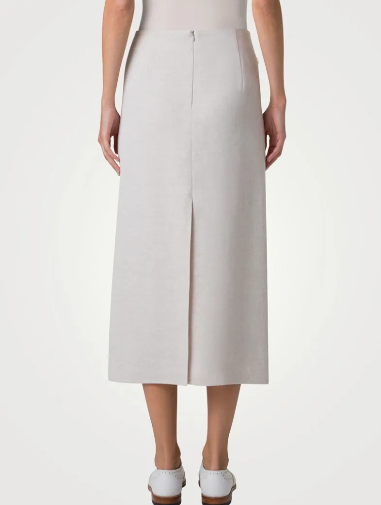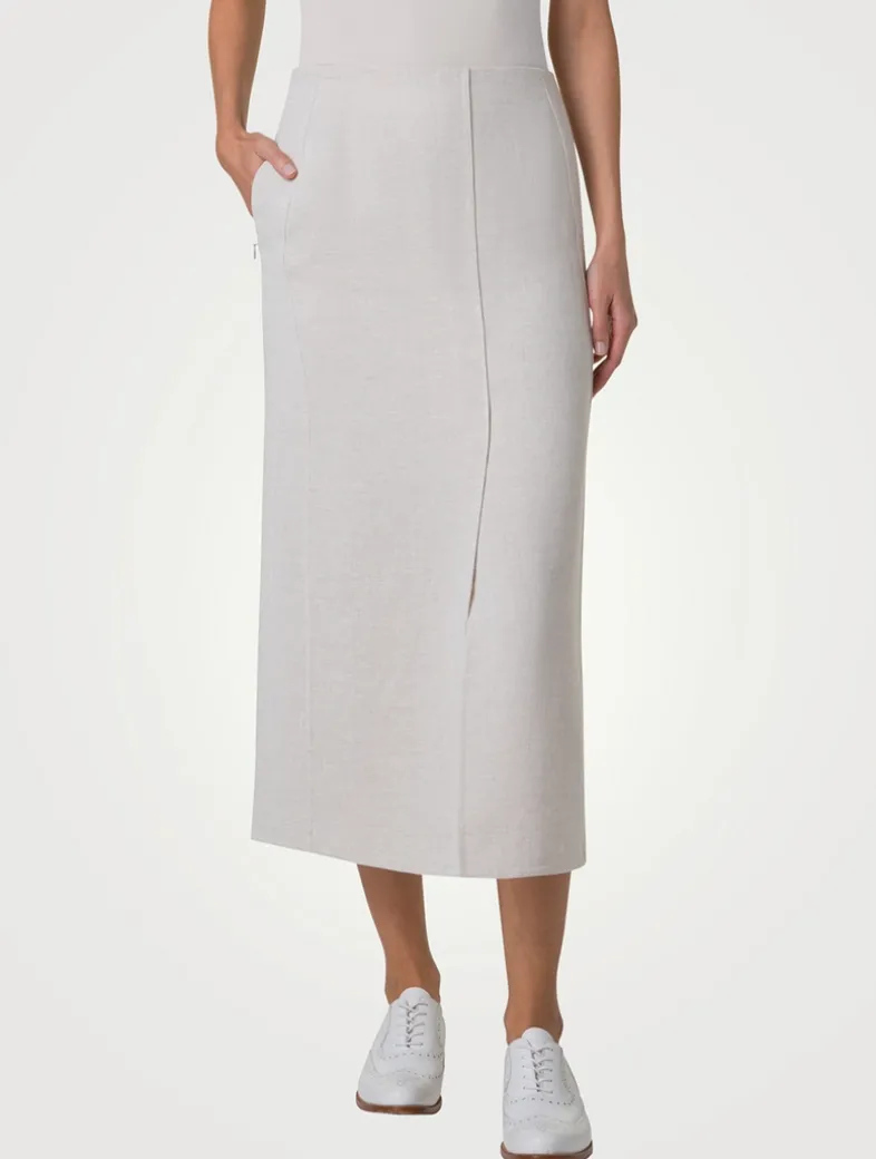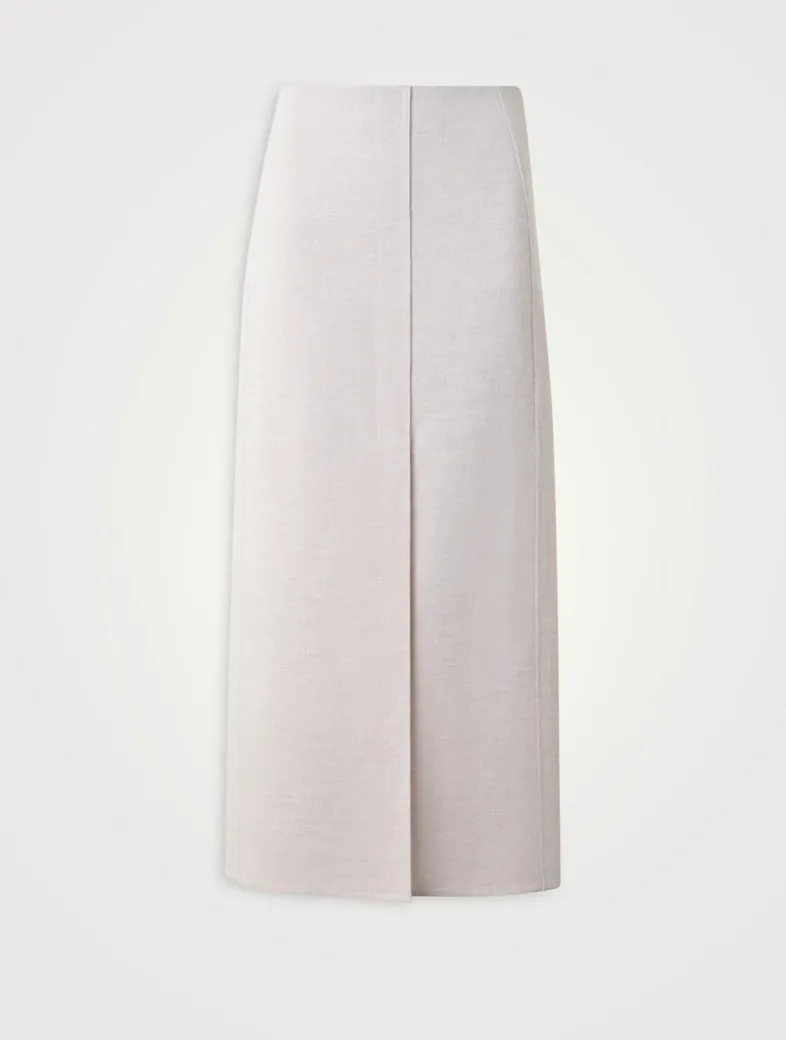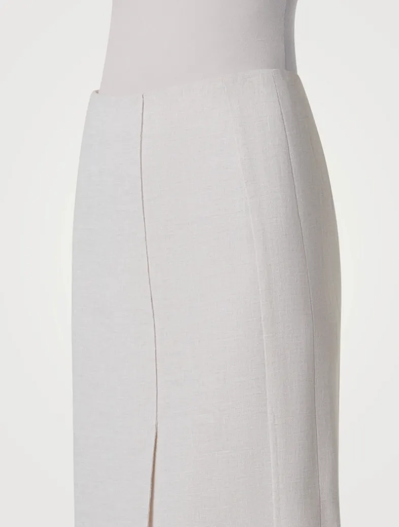 Falling to mid calf, this pencil skirt is crafted of double-face twisted linen with a touch of cotton. The below-the-knee style is finished with a high front slit for easy movement.