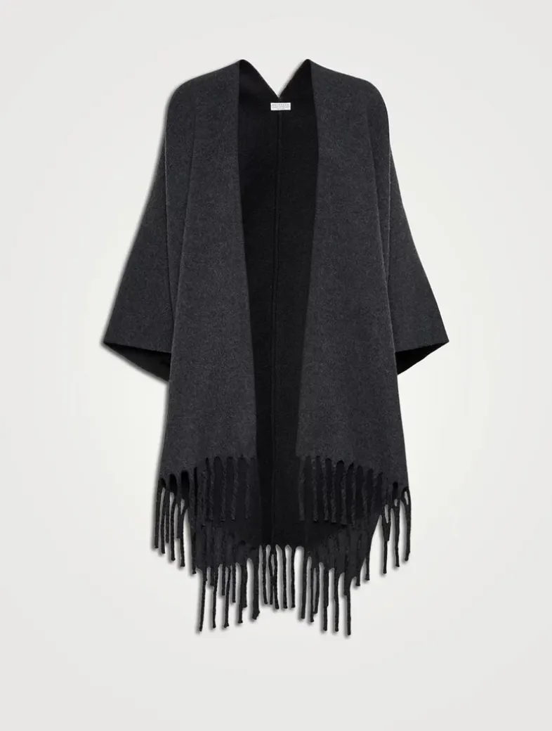 Wool and cashmere reversible double knit poncho