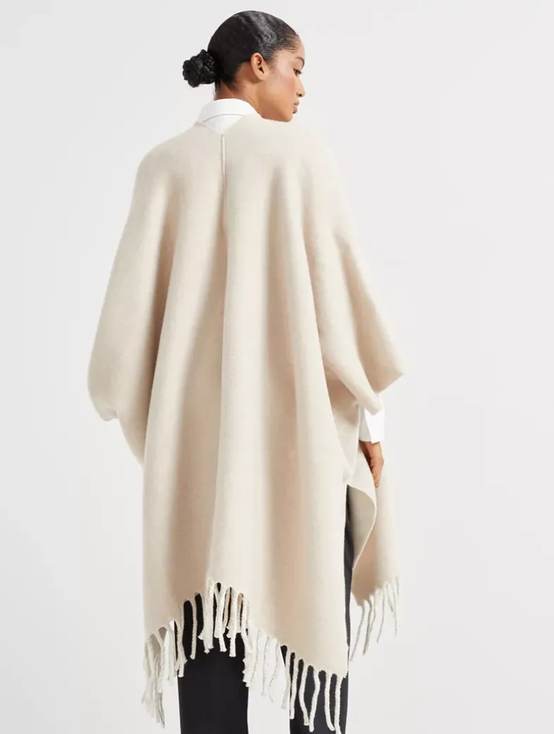 Wool and cashmere reversible double knit poncho