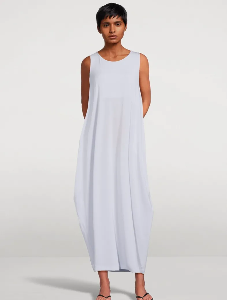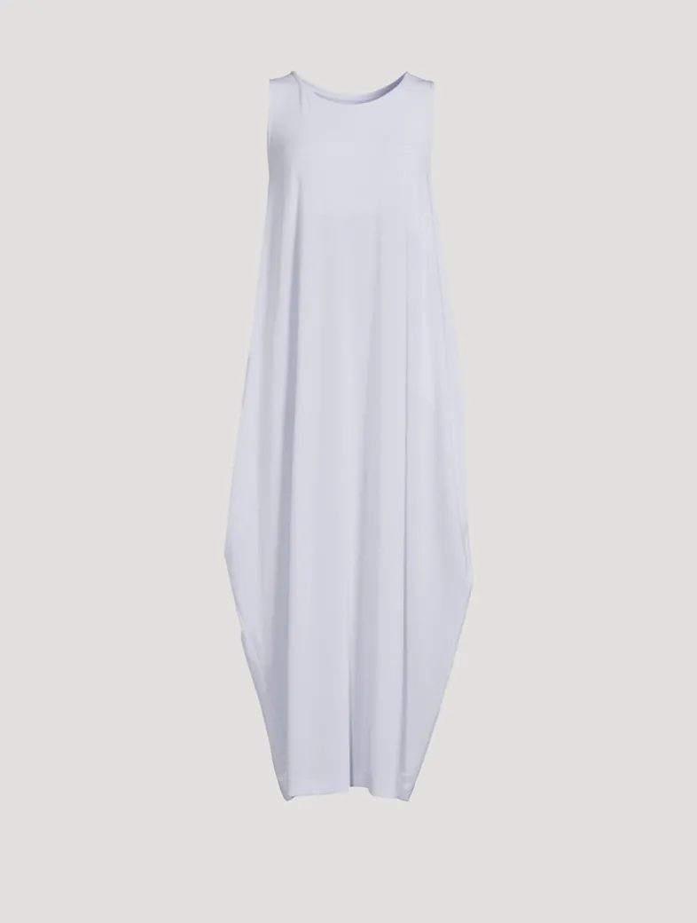 Soft Drape Jersey-56 is a staple series, offered in a neutral colour palette. This sleeveless midi dress has a scoop neckline.