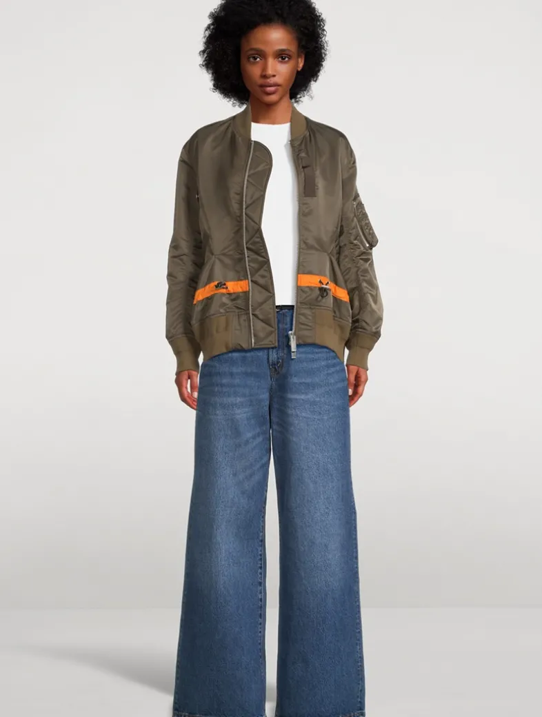 Crafted from a lightweight nylon twill, this bomber jacket features classic styling and a drawcord detail at the waist that can be adjusted to alter its oversized silhouette.