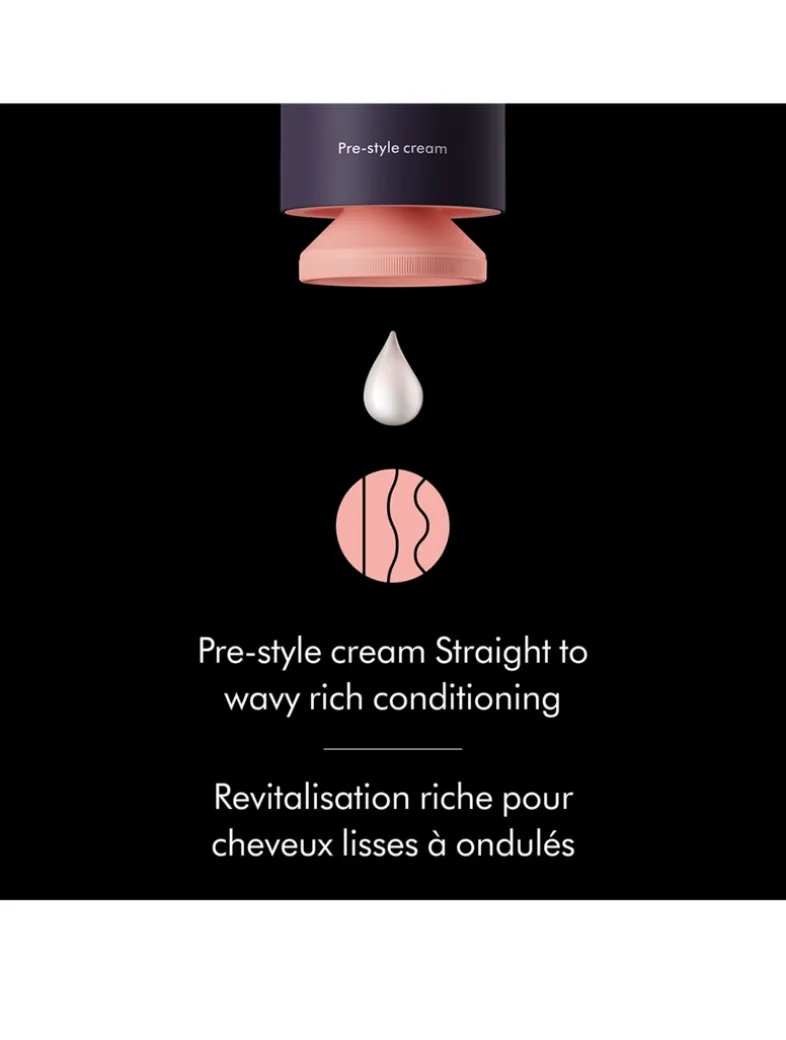 A pre-styling cream that harnesses Dyson’s Triodetic™ technology to flexibly lock in heat-styled hair and create touchable, long-lasting hold with a lightweight, natural feel. Available in four formulas, each precisely blended with ingredients to deliver the best results for your specific hair type.