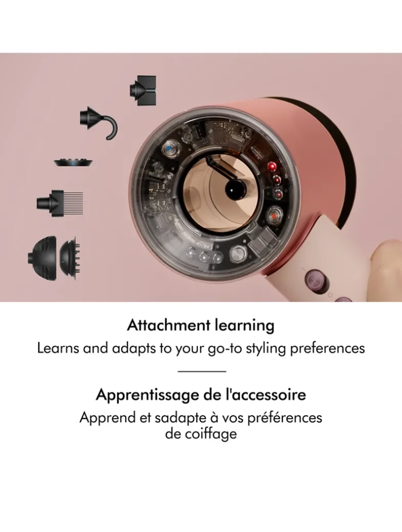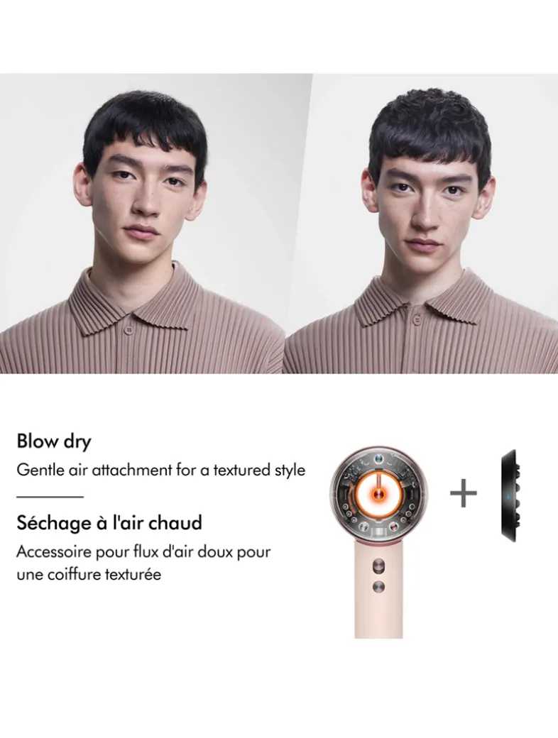 5 Intelligent attachments, for all hair types, help in fast, intelligent drying. The Dyson Supersonic Nural™ includes the new Wave+Curl Diffuser which disperses airflow in two different ways to enhance natural curl patterns.