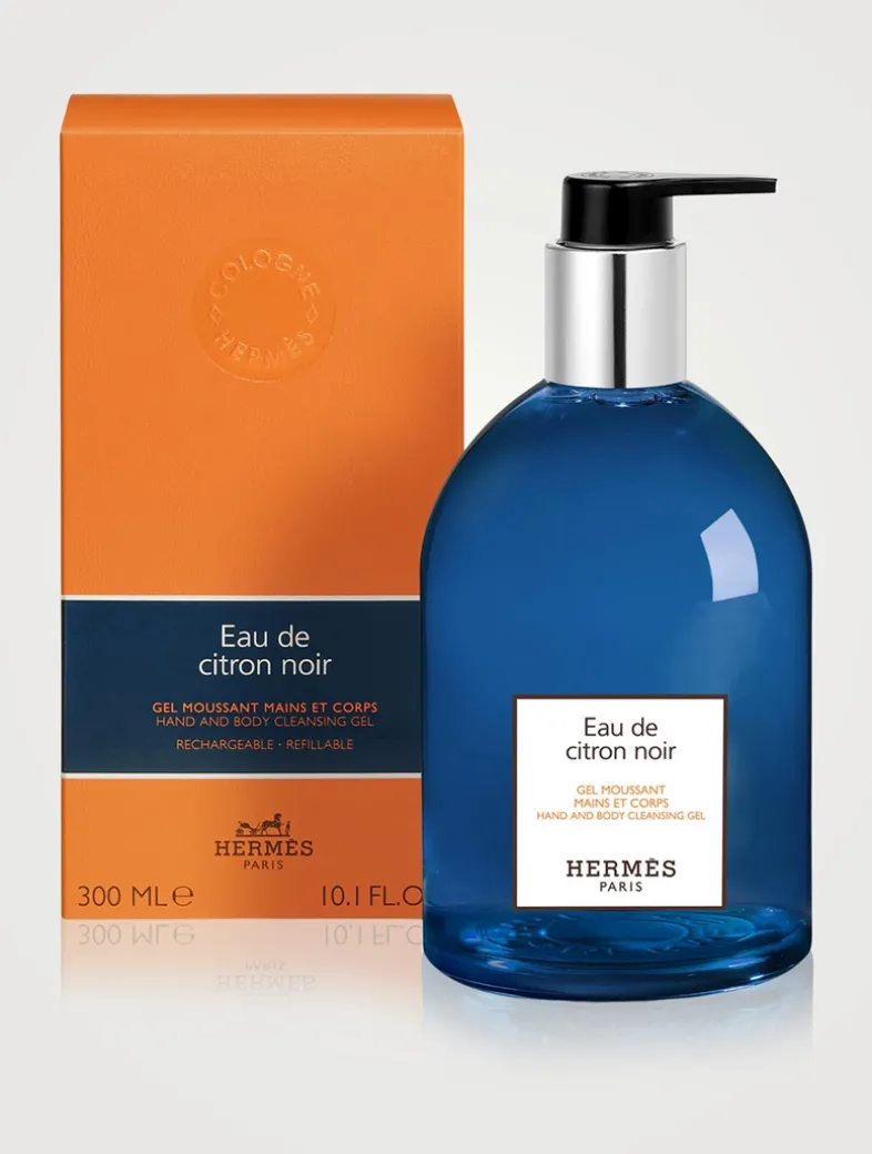 Eau de citron noir expresses the joyful and generous freshness of the Colognes in the form of a hand and body cleansing gel. Another way to wear fragrance. The straight lines of the bottle are embellished with a radical deep blue, emblematic of Eau de citron noir, and two signature details: the H imprint of the base and the saddle nail engraved on the pump. The bottle is made of recyclable glass. The Eau de citron noir hair and body shower gel refill can be used to replenish the 300ml bottle. A responsible gesture, integral to an object created to last. A rich and environmentally friendly gel that forms a pleasant, easy-rinse lather. The skin is soft and delicately fragranced.
