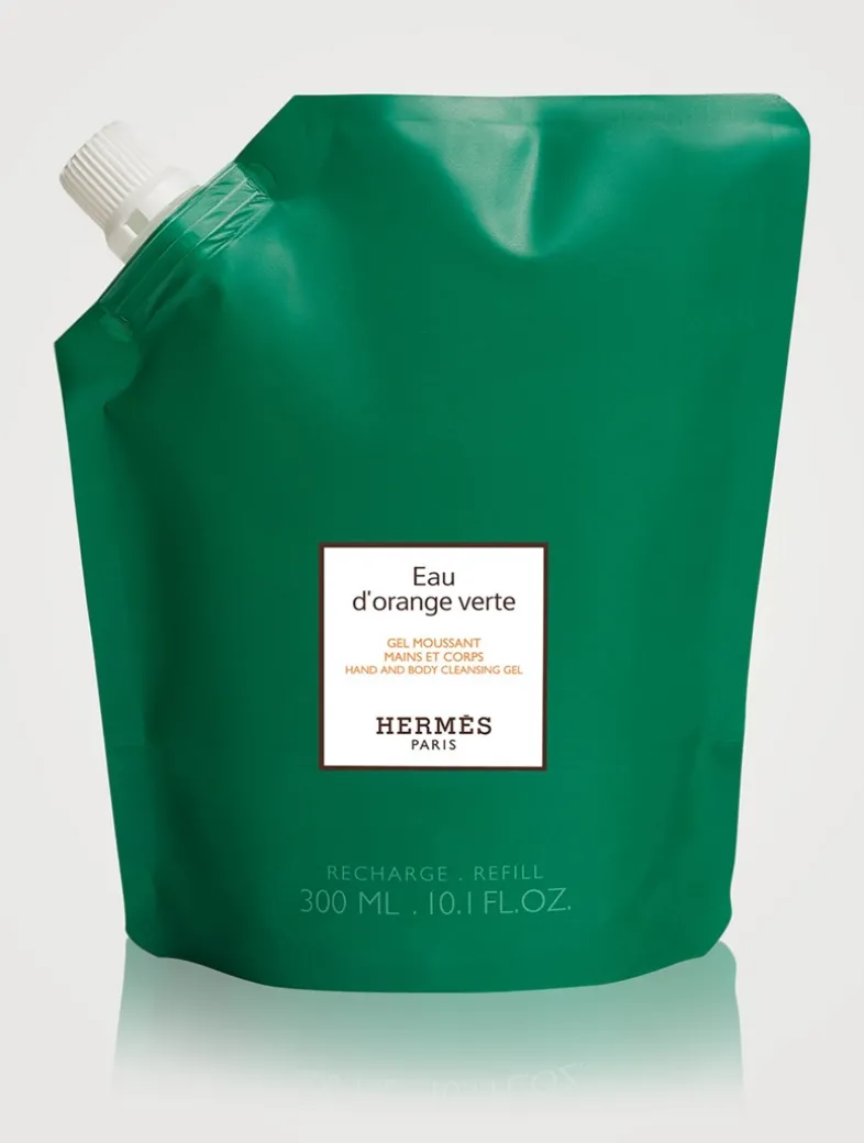 Eau d’orange verte expresses the joyful and generous freshness of the colognes in the form of a hand and body cleansing gel. Another way to wear fragrance. The fully recyclable refill can be used to replenish the glass Eau d’orange verte cleansing gel bottle of the same size. A responsible gesture, integral to an object created to last. A rich and environmentally friendly gel that forms a pleasant, easy-rinse lather. Leaving the skin delicately perfumed and soft.
