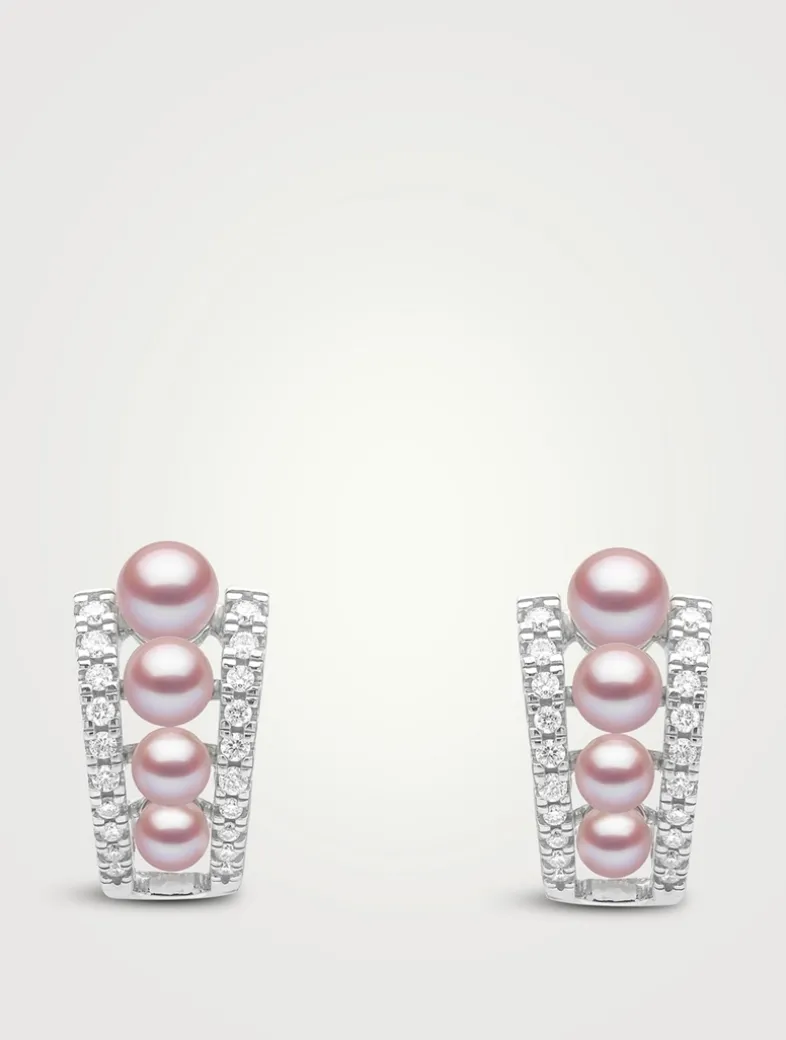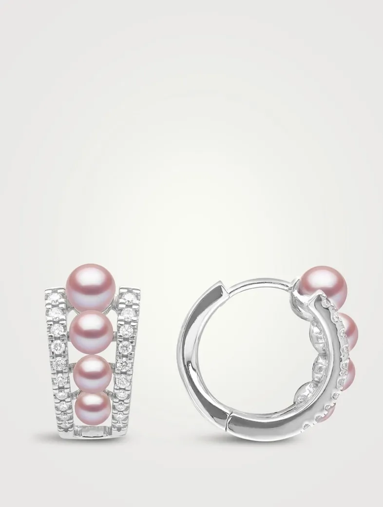 Part of the Eclipse collection, these delicate hoops encapsulate the magical sensation of a total eclipse. Elegant in 18K white gold, these subtle, yet striking, earrings feature a row of pink pearls between clean diamond lines.