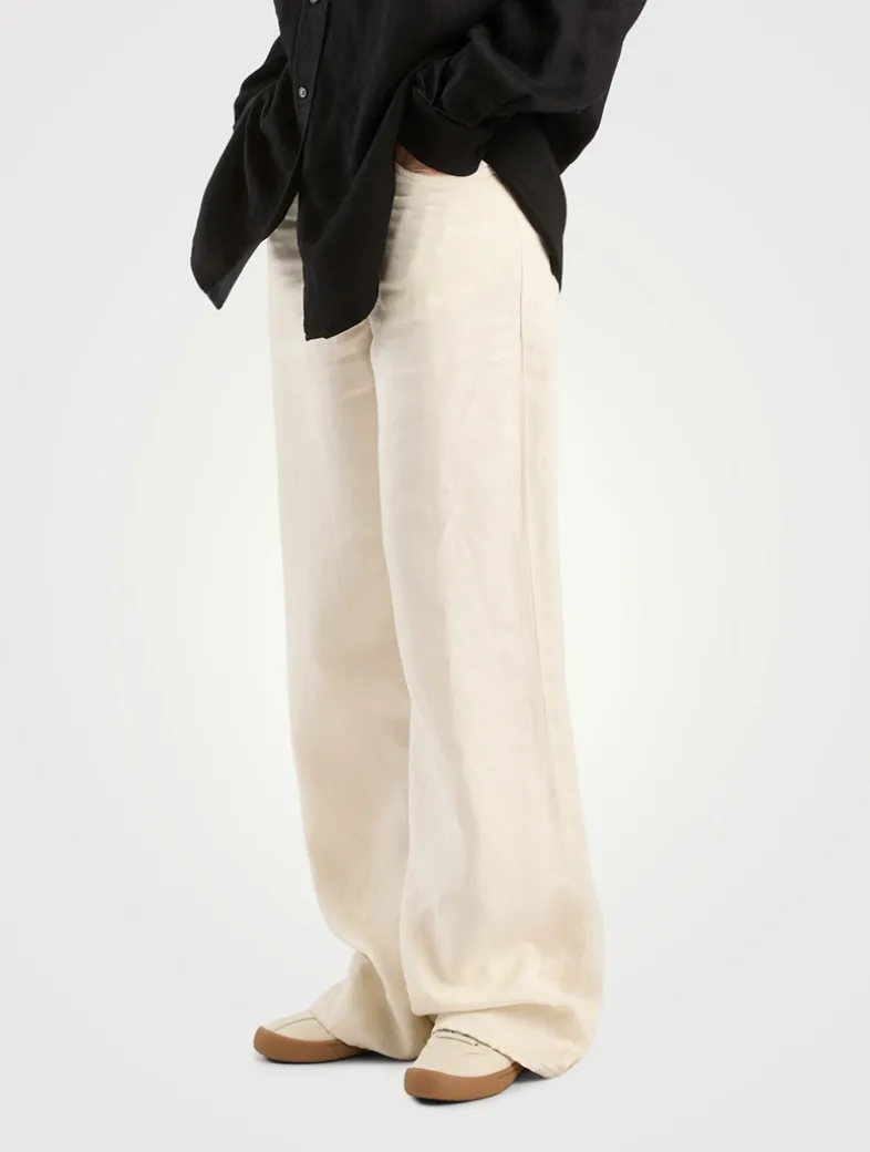 Cut to a mid-rise, these jeans are crafted in soft linen denim. They are designed with a straight-leg fit, tonal topstitching, and classic five-pocket construction.