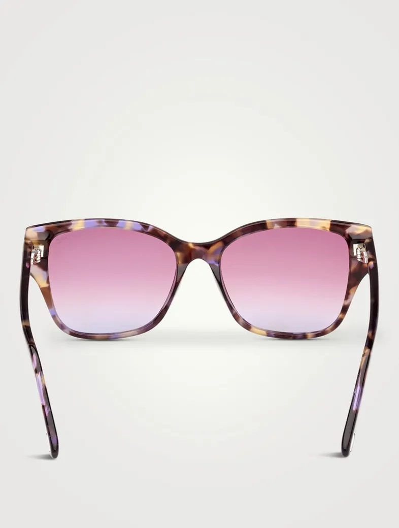 Designed with a soft cat-eye shape, these sunglasses are enriched by the metal ‘T’ temple decoration and metal ‘T’ logo. Made in Italy, and finished in bio-based acetate with polarized lenses.