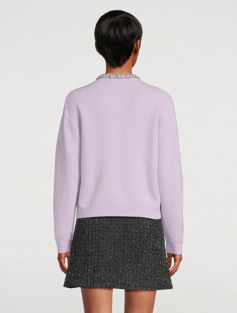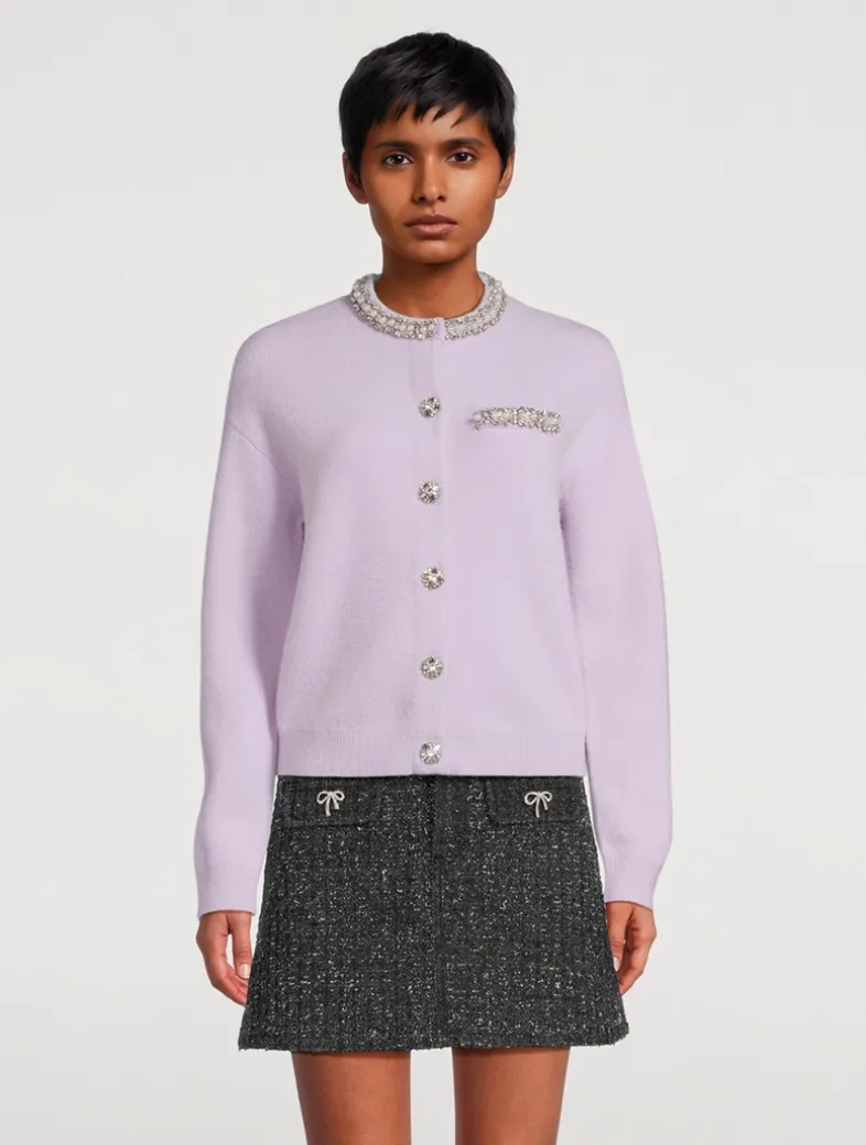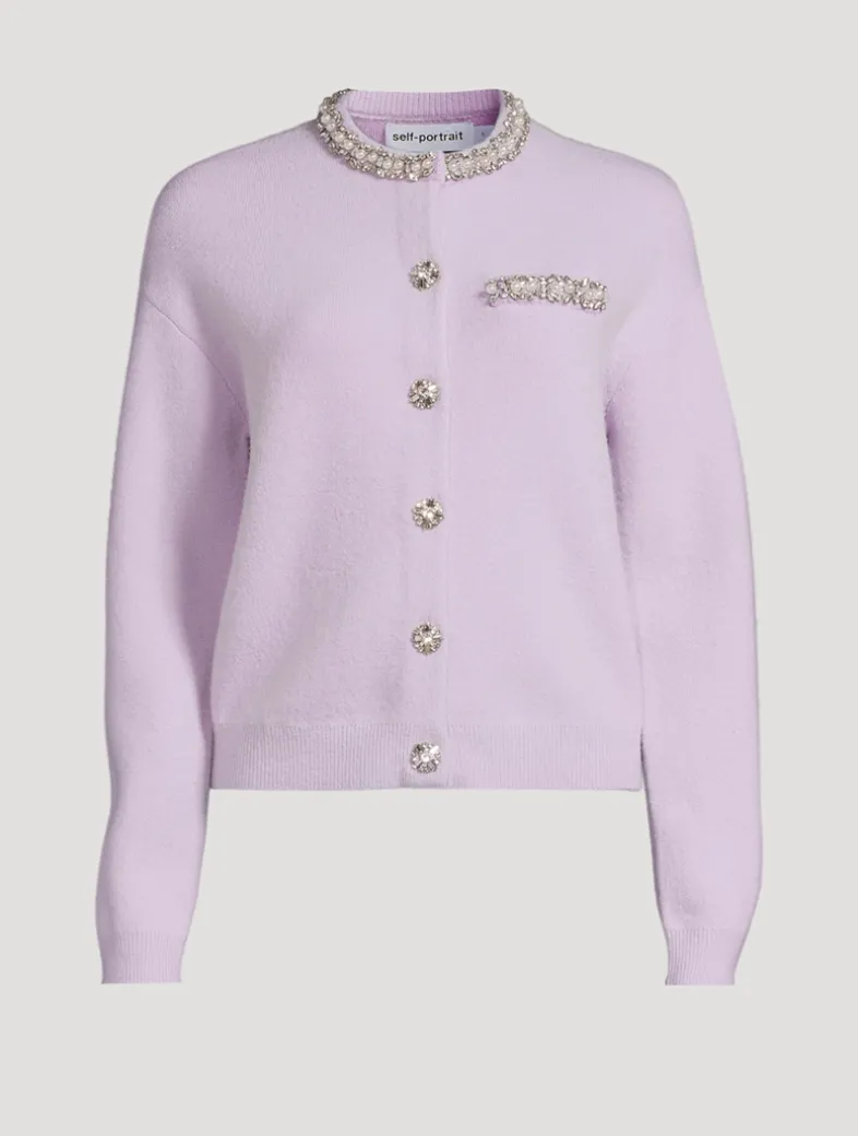 Knit from a luxurious wool and alpaca blend, this crewneck cardi is elevated with sparkling crystal beaded embellishment.