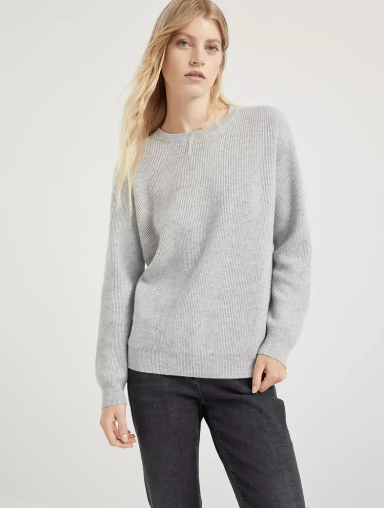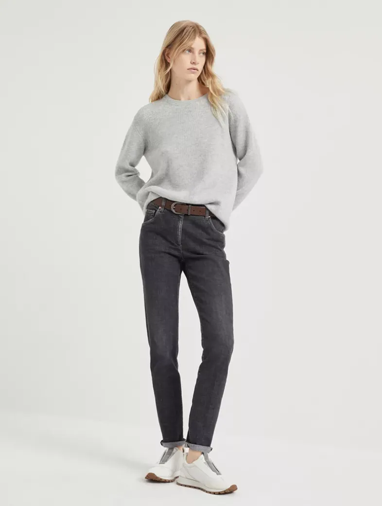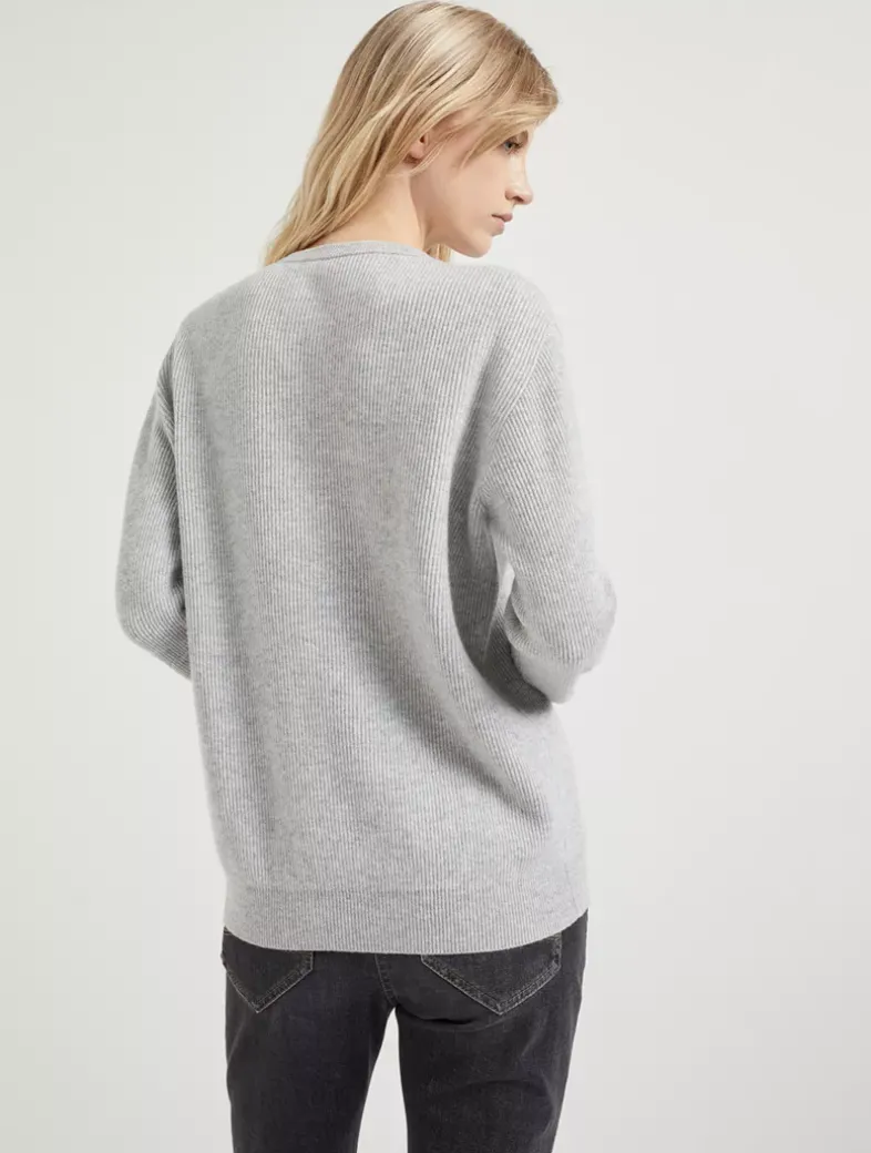 Cashmere English rib sweater with monili