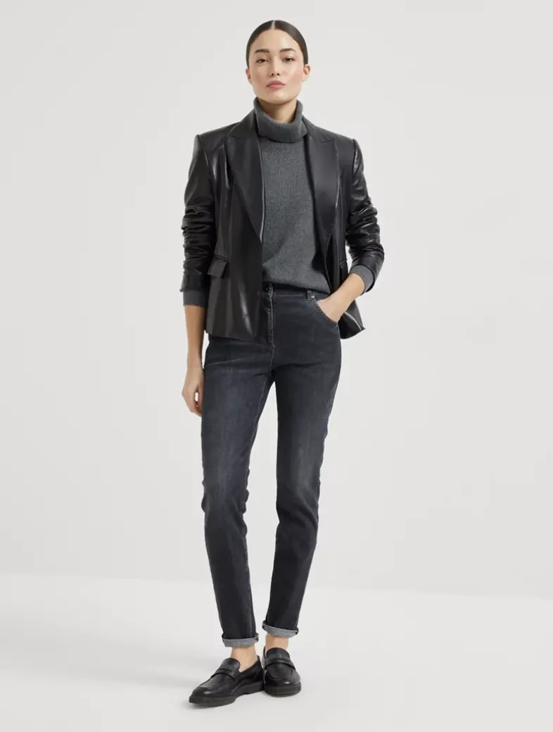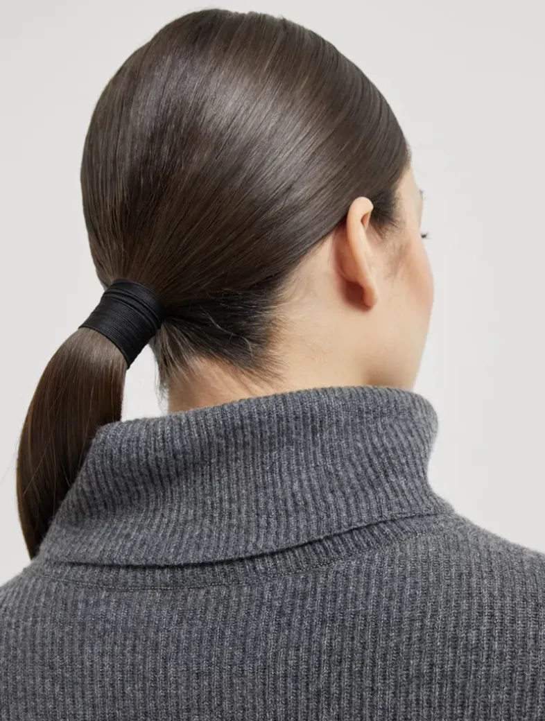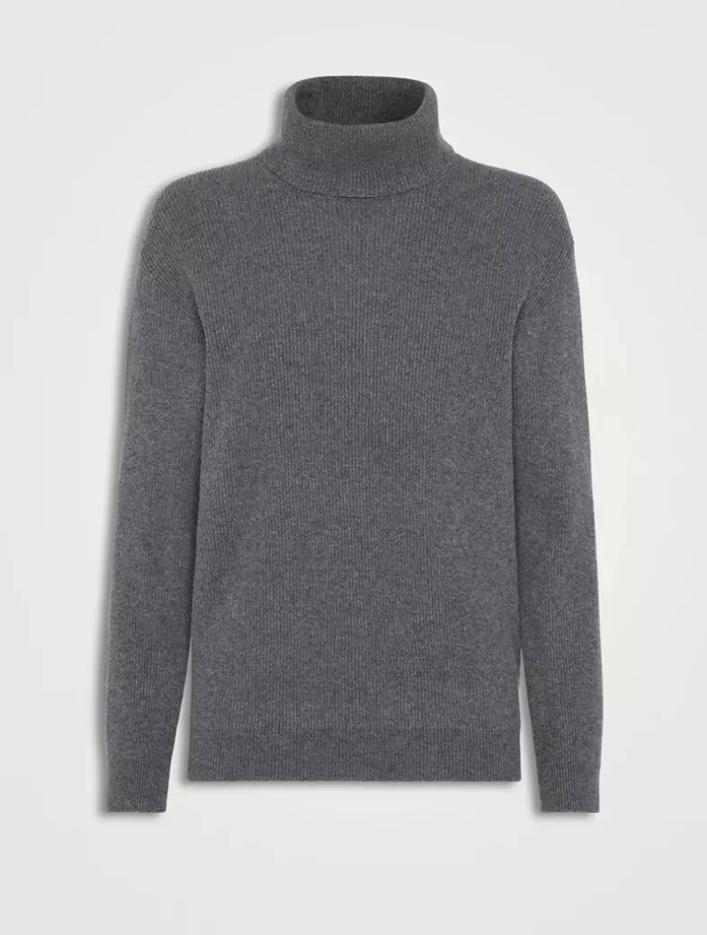 Cashmere English rib turtleneck sweater with monili