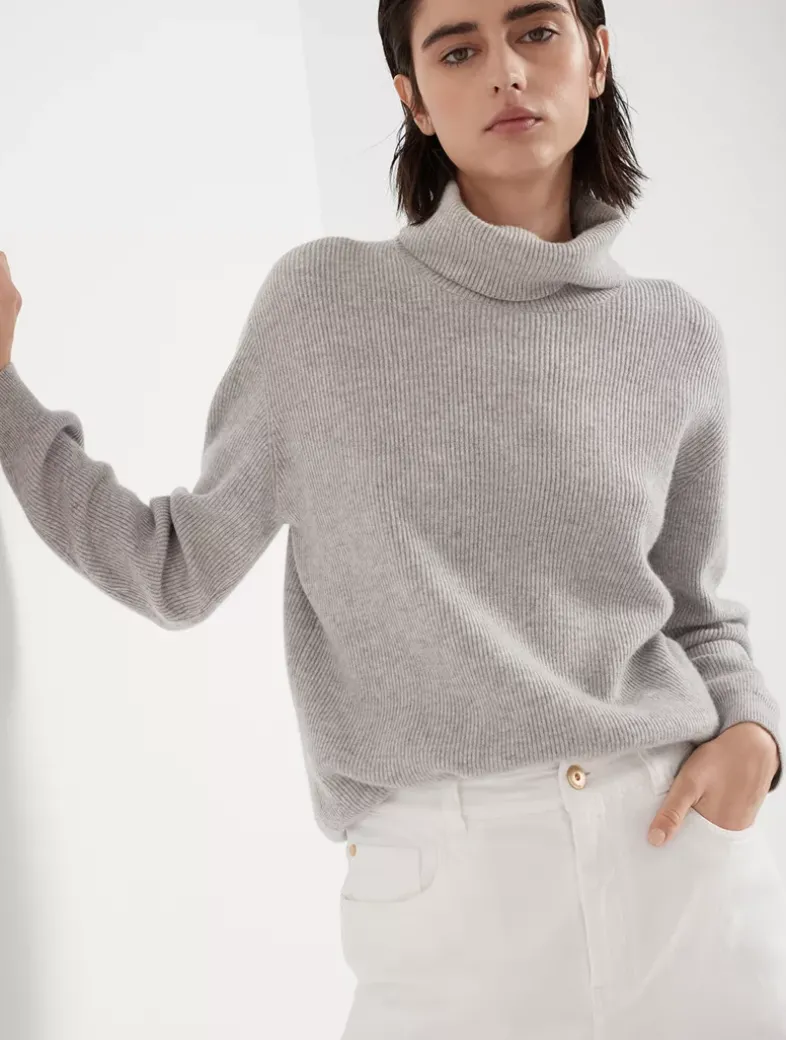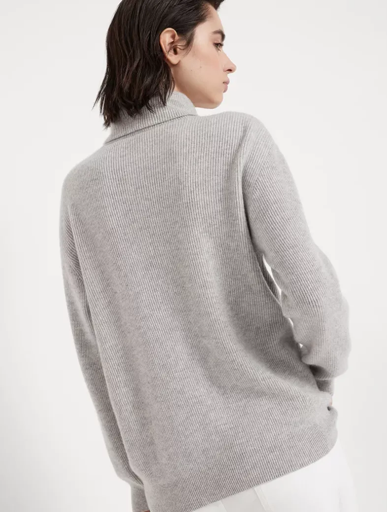 Cashmere English rib turtleneck sweater with monili