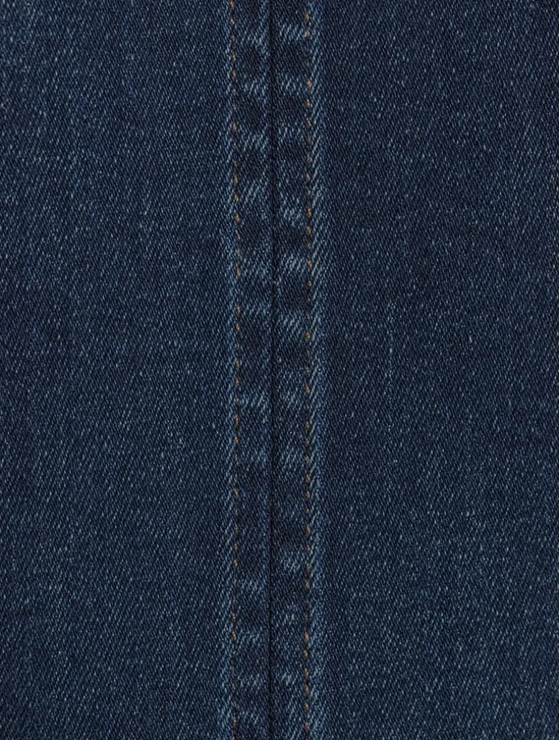 Esme is a form-fitting, sleeveless midi dress closed with a zipper at the back. Crafted from denim with a hint of stretch.