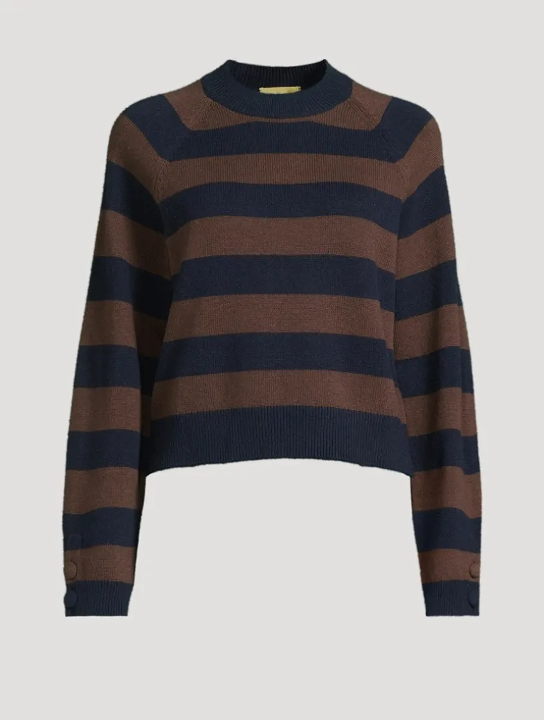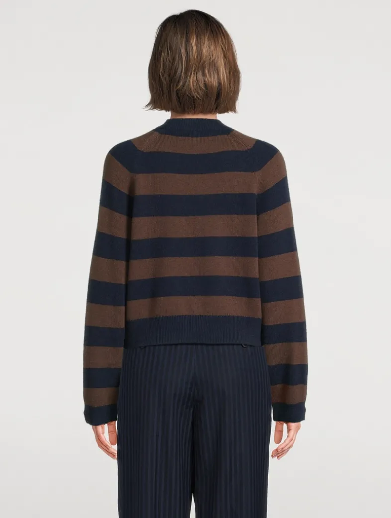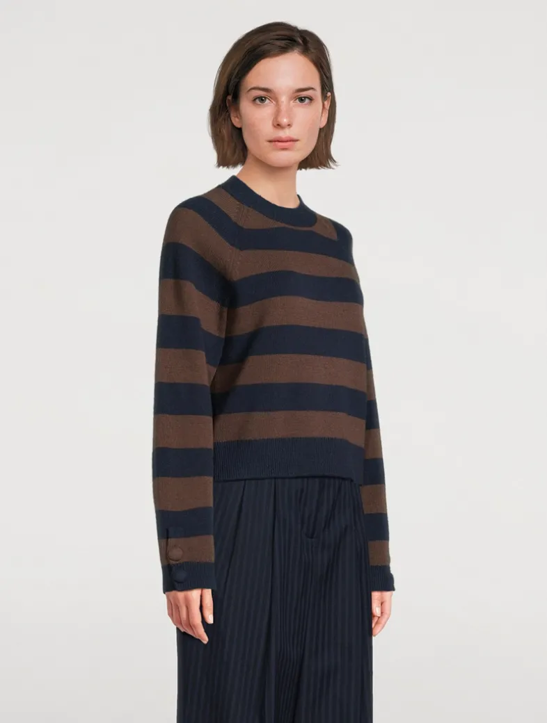 FTC® Stands for Fair Trade Cashmere. The family business was founded in 2003 and is now in the second generation. All of FTC®s products are made in their own manufacturing plants and are Made in Green by Oeko-Tex certified. Patterned with stripes, this midweight cashmere sweater is finished with knit-covered button details on the sleeve.