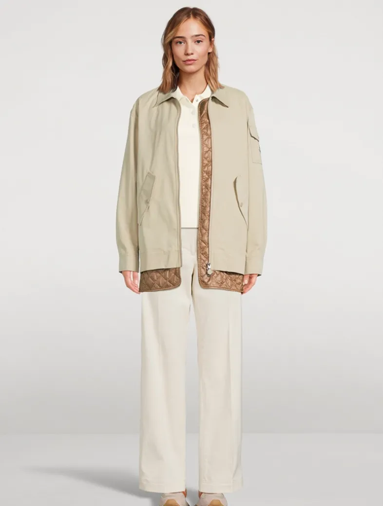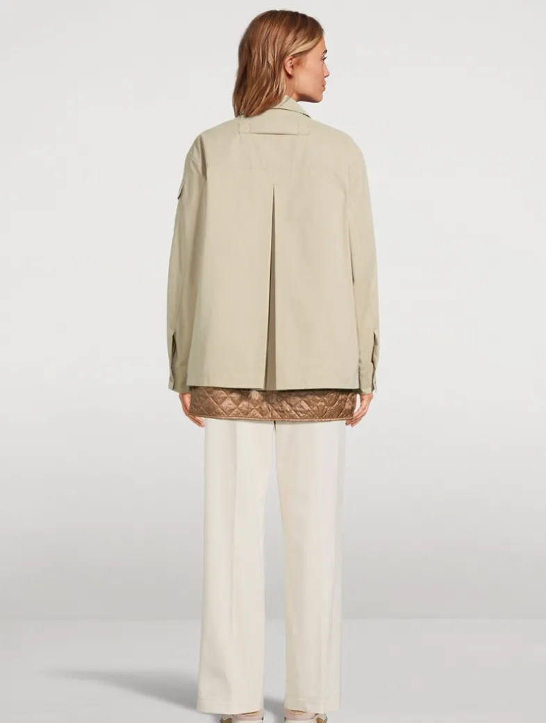 Made from a cotton-blend canvas, this field jacket is highlighted with quilted nylon padding at the placket and hem to enhance its utilitarian appeal. A pocket at the sleeve and a pair at the waist complete the look.