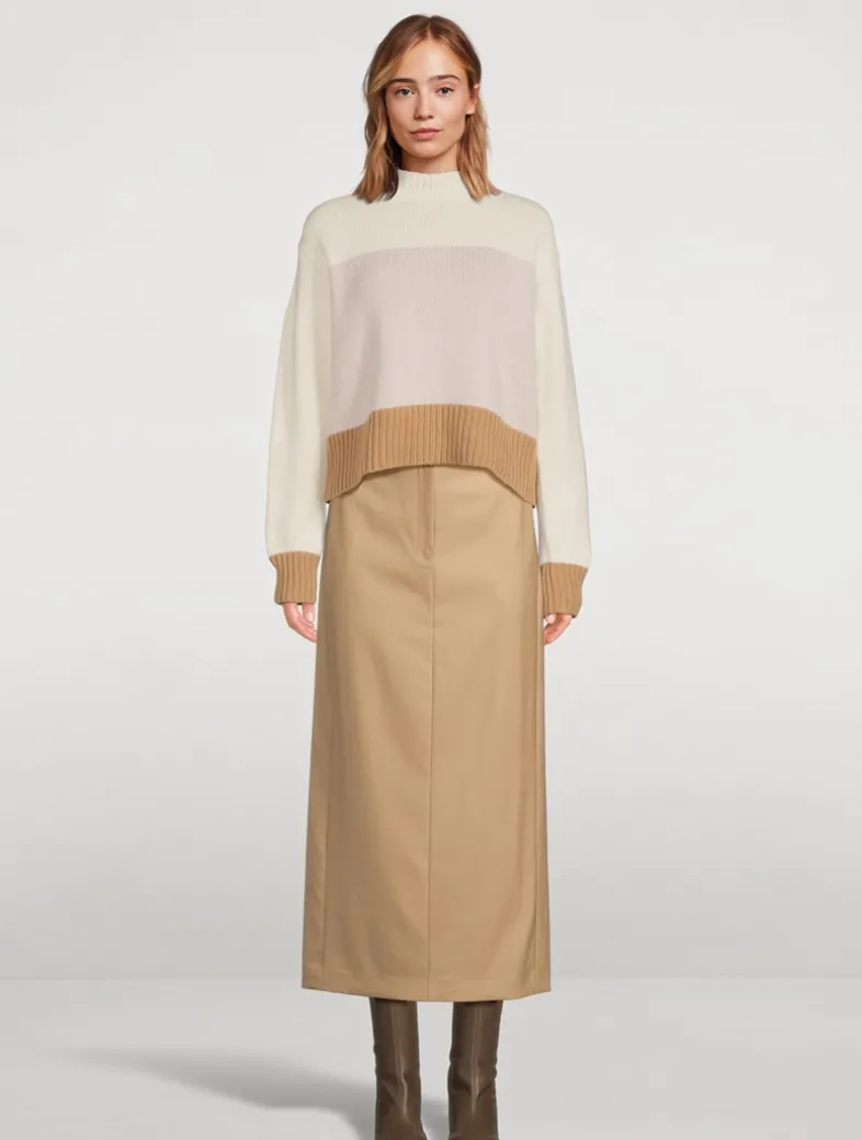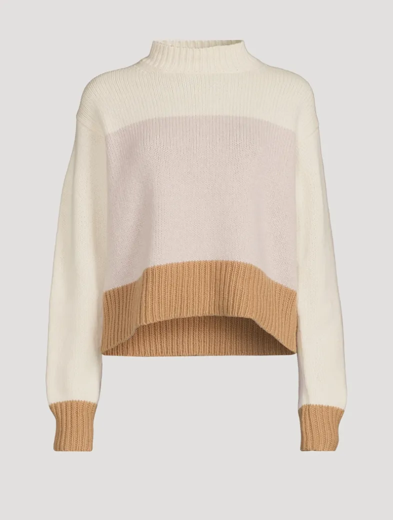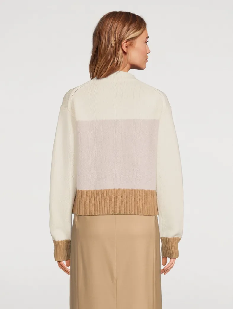 This pullover is colourblocked in a wool cashmere mix from a leading Italian mill with a felted rib texture that has a luxurious look and an incredibly soft feel. Knit for a slightly boxy fit, the crewneck is the perfect cozy layer.