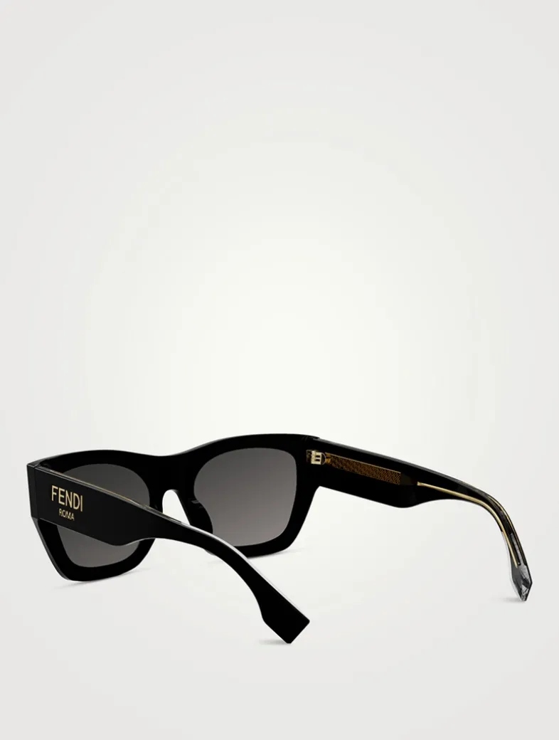 Made in Italy from glossy acetate, these square FENDI Roma sunglasses feature temples with visible metal core and laser etched FF motifs.