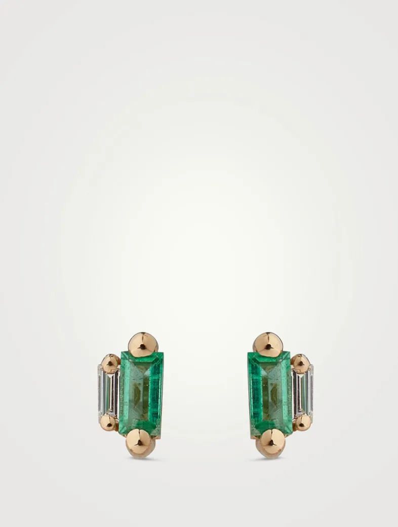 From the award-winning Fireworks collection. These dainty stud earrings feature baguette-cut emeralds set beside smaller diamond baguettes.