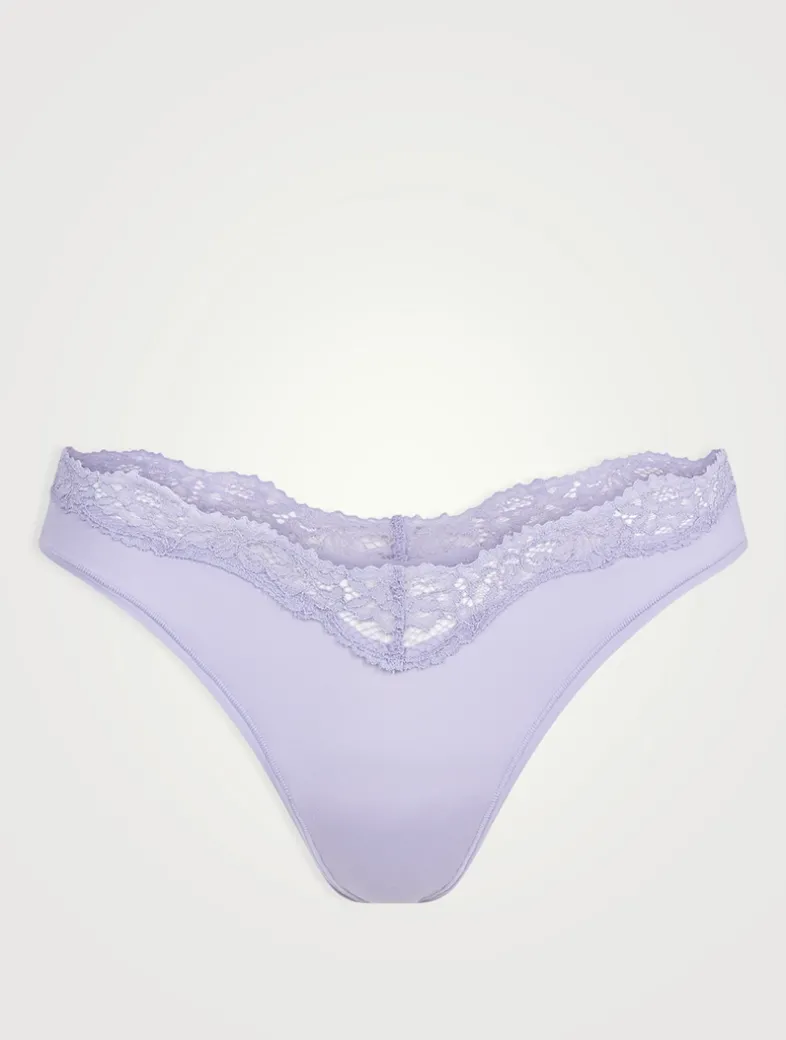 This buttery-soft dipped thong perfectly molds to your body and has the most delicious stretchy lace details. Features a 100% cotton gusset. Fits true to size.