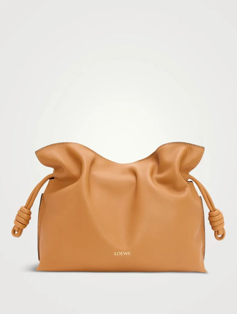 Launched in the 1970s, the Flamenco Clutch cinches closed using drawstring pulls finished in signature coiled knots. This version is crafted in nappa calfskin with a suede lining. It has a detachable and adjustable strap, allowing for shoulder, crossbody or hand carry.