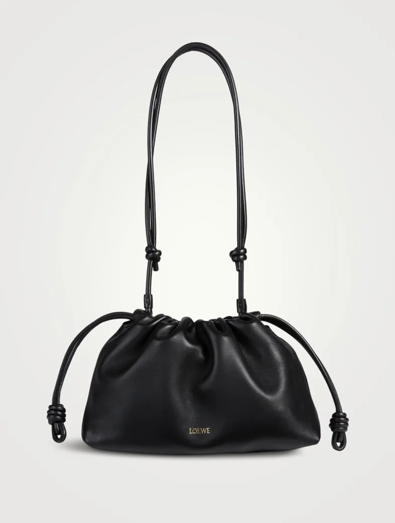 The sensual and mellow Flamenco is defined by a ruched design complemented by key details such as the signature knots at the sides. Versatile and functional, it can be carried as a clutch, worn over the shoulder using the donut chain, or across the body with the accompanying leather strap. This version is crafted in mellow nappa lambskin with a suede lining.