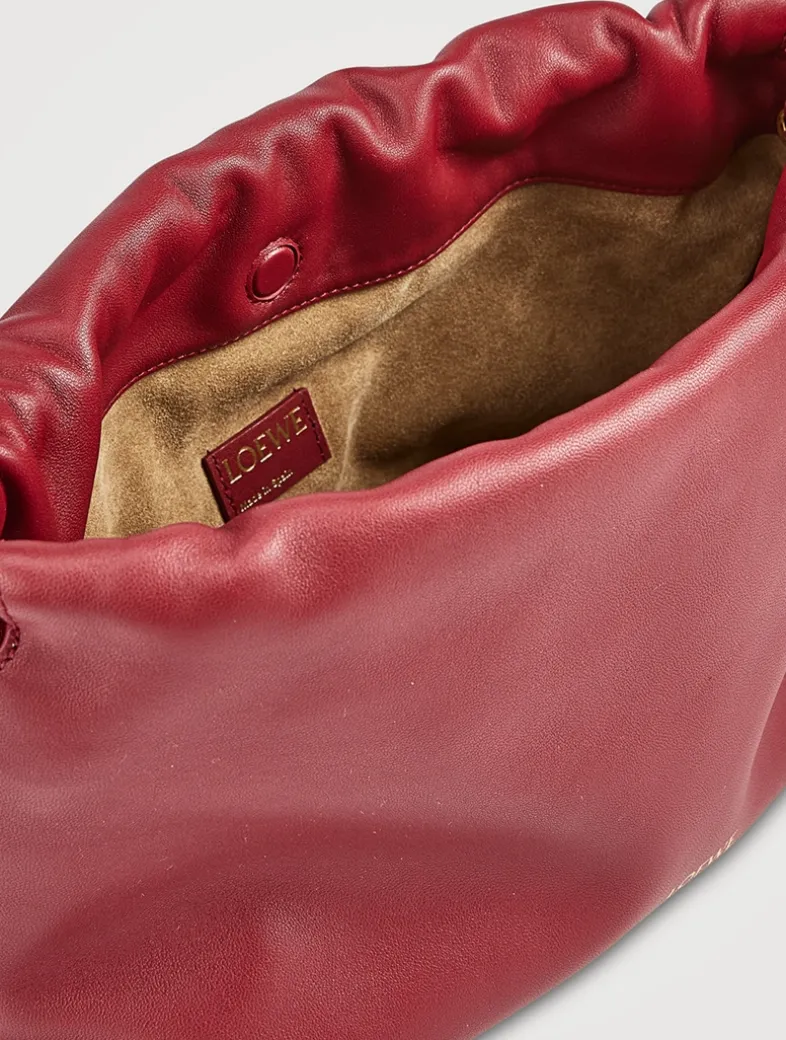 The sensual and mellow Flamenco is defined by a ruched design complemented by key details such as the signature knots at the sides. Versatile and functional, it can be carried as a clutch, worn over the shoulder using the donut chain, or across the body with the accompanying leather strap. This version is crafted in mellow nappa lambskin with a suede lining.