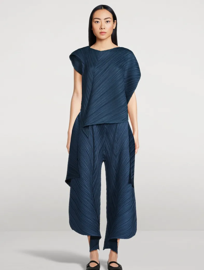 The bold silhouettes of Flare feature distinctive fold lines and elegantly turned-up corners, creating a unique design expressing refraction of light. These cropped, flared pleated trousers have an elasticated waistband and side pockets.