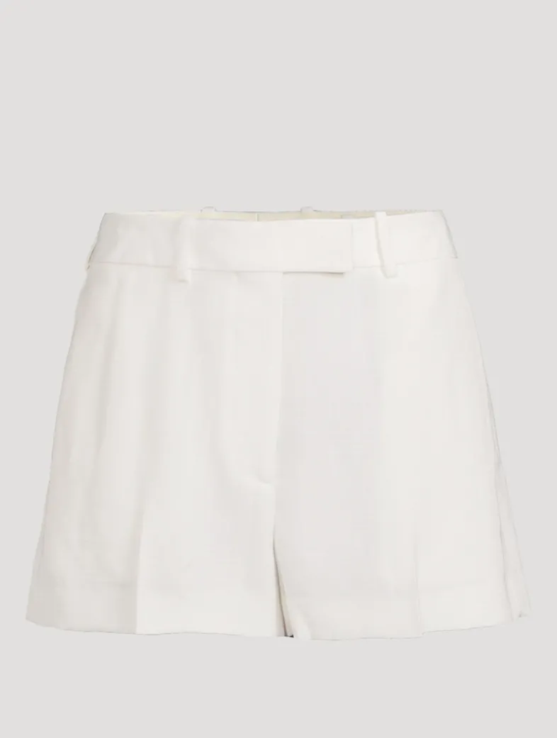 These classic trouser shorts are made in textured viscose cut with a slight flare and a higher rise. Finished with on-seam side pockets and welt pockets at the rear.
