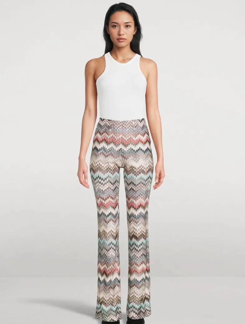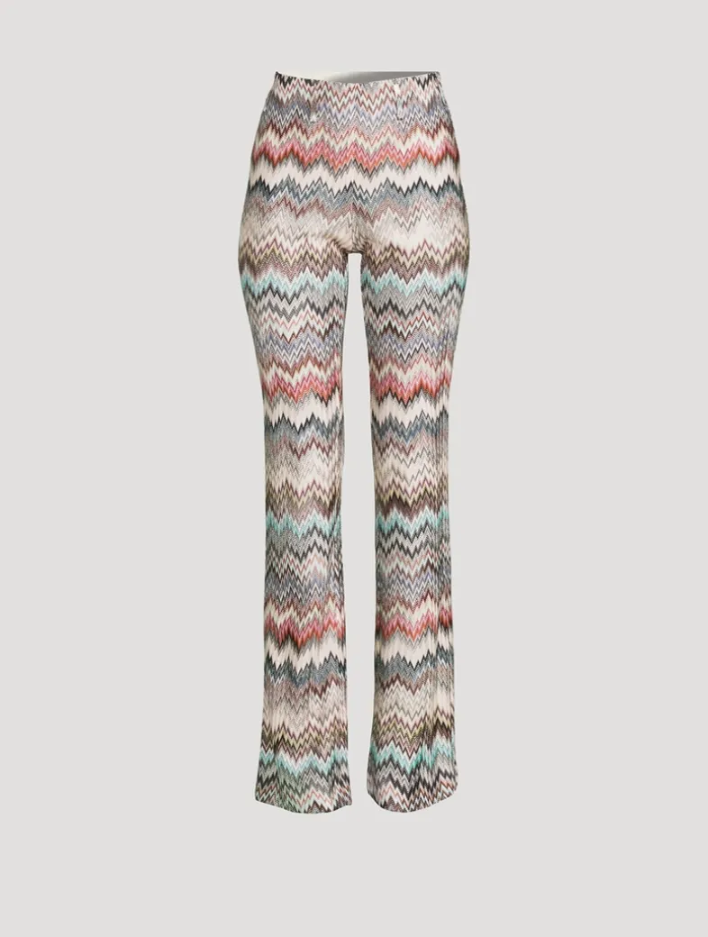A flared trouser with a distinctive design is made from pure viscose to ensure lightness and fluidity. The elastic waistband guarantees a perfect fit, while the raschel pattern adds a bold and modern twist, making it ideal for a refined, contemporary look.