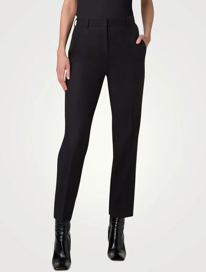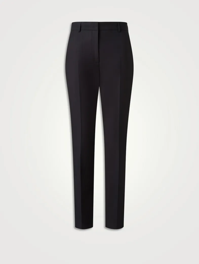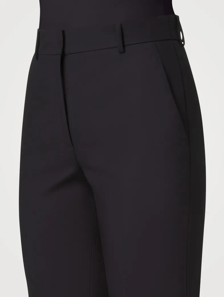 Crafted in comfy cotton stretch poplin, these slim-fit pants are designed with a tapered leg and ankle length. The style is complete with a concealed front closure and belt loops.