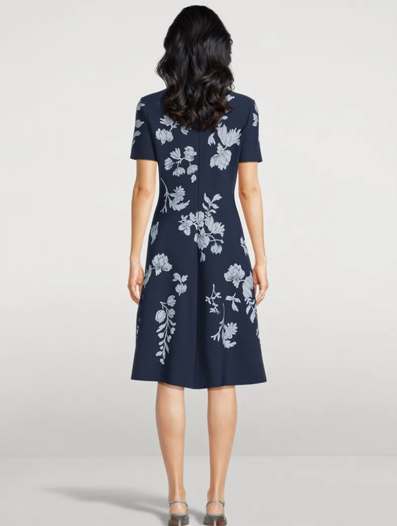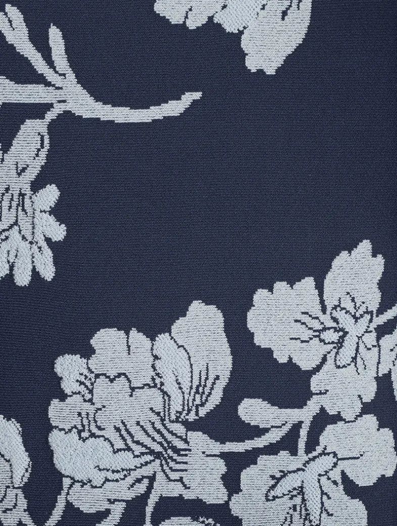 Cut from stretch jacquard, this midi dress flaunts the season’s bold floral motif and a flattering fit-and-flare silhouette.