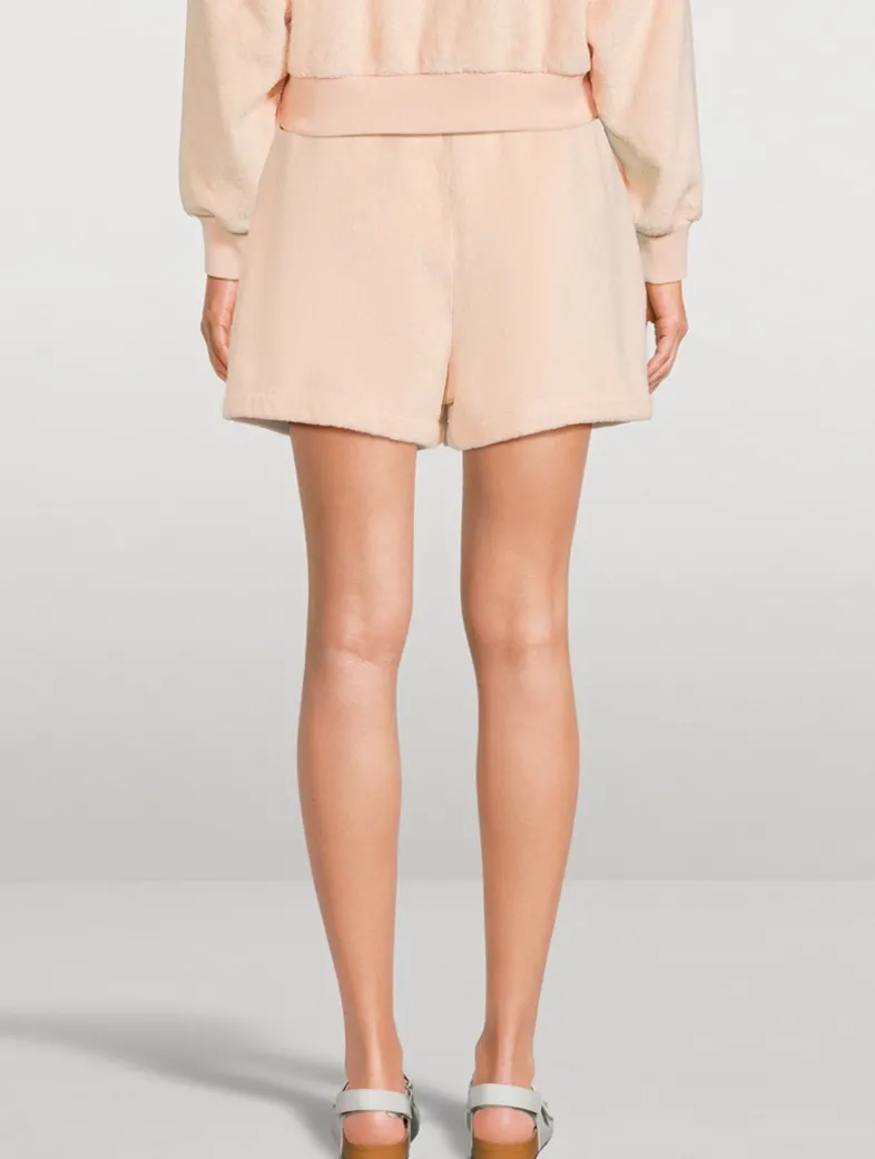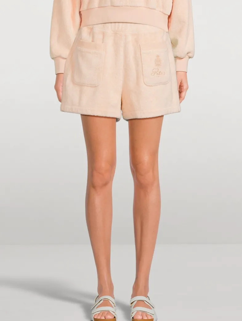 This piece is part of a collaboration between Frame and Ritz Paris. Crafted from a plush cotton velour, this relaxed-fit shorts are topped with an elastic waistband and feature front patch pockets embroidered with a metallic version of the hotel’s logo.