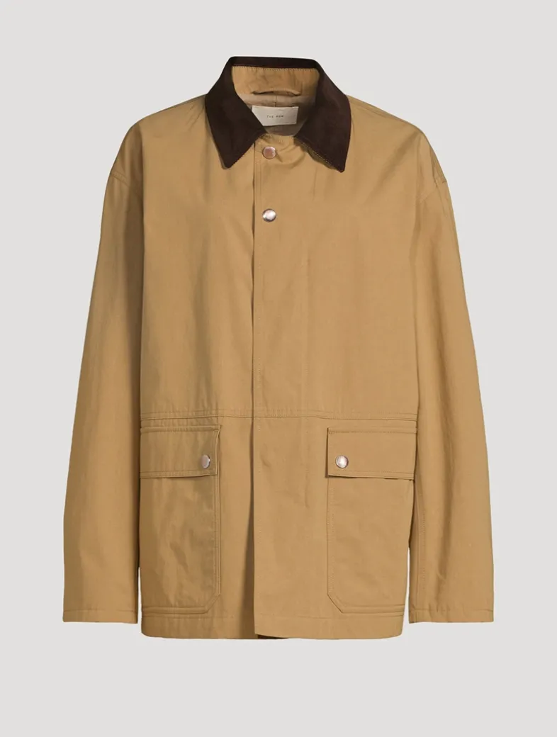 Made in Italy, this outdoor jacket in enzyme-washed cotton offers a luxe take on a rugged staple. It is designed with a contrasting corduroy collar, front patch pockets, and concealed front placket with snap and zipper closure.