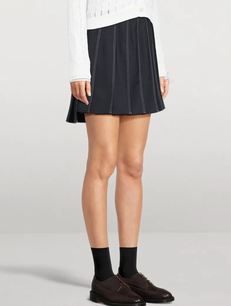 Tailored to perfection, the Fresco Pleated Mini Skirt effortlessly elevates any outfit. A luxurious wool fabric, intricate contrast stitching, and other thoughtfully curated details woven throughout are sure to leave a lasting impression.