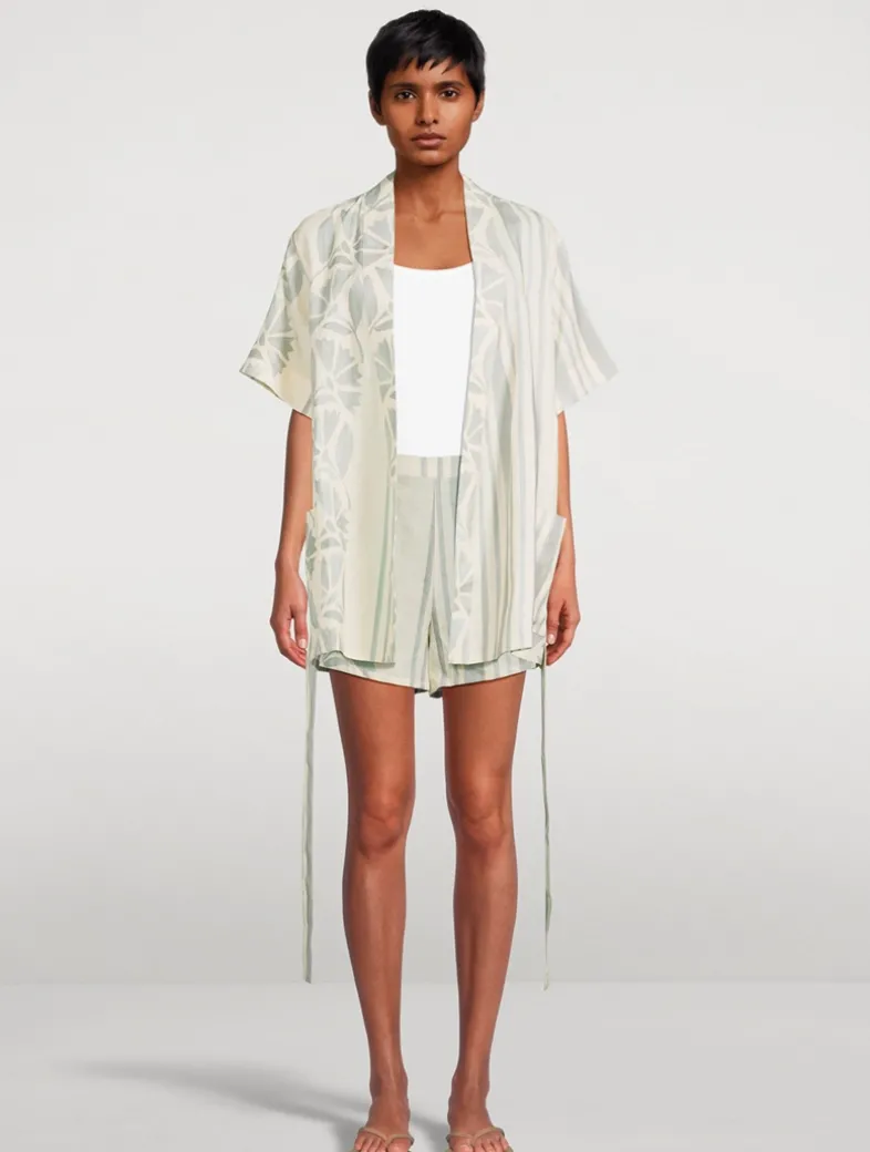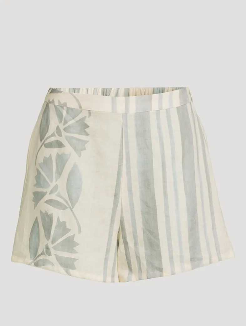 This comfortable, slim-line mini short is made from 100% linen. Soleil Soleil’s 100% linen fabric is minimally processed and naturally textured which results in speckles in the fabric and print.