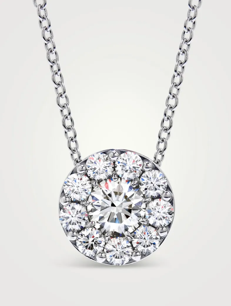 The Fulfillment Pendant Necklace features a brilliant solitaire accented by a halo of diamonds for a bolder and brighter look.