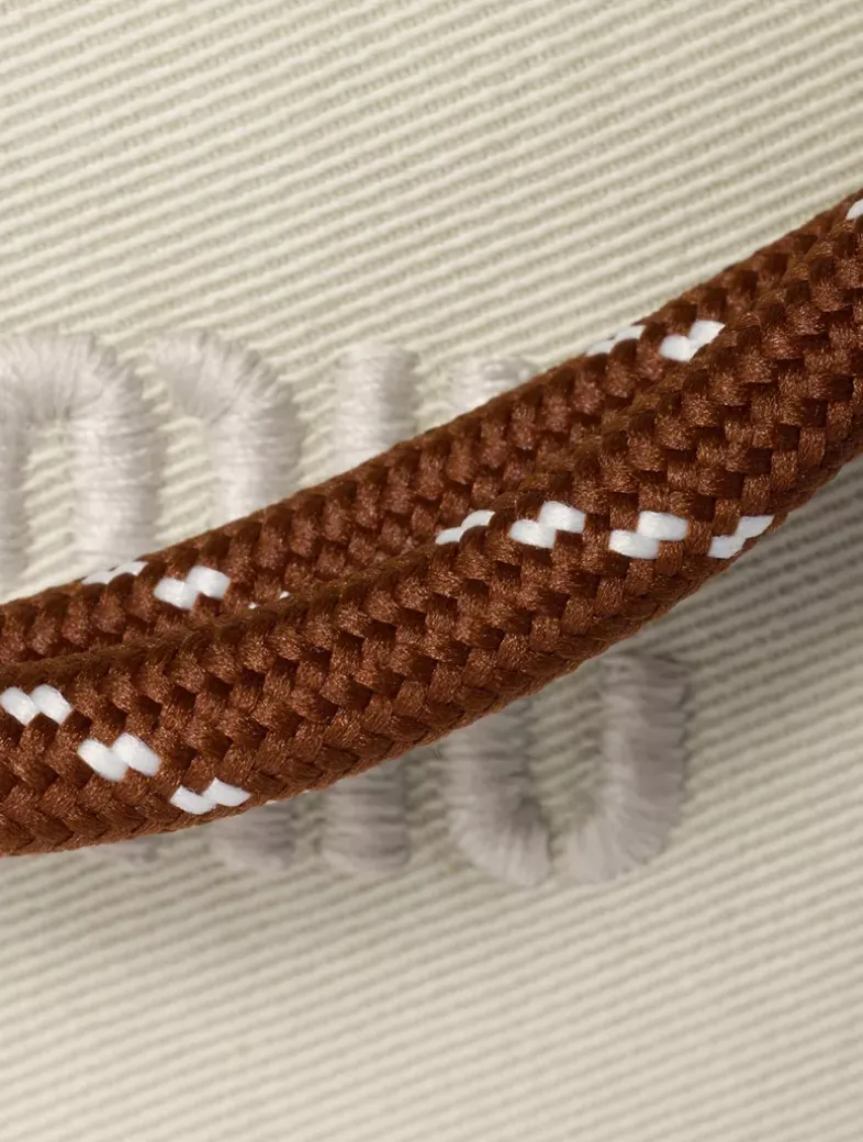 Zipper closure Woven technical tape wristlet with snap-hook Technical fabric lining Embroidered lettering logo
