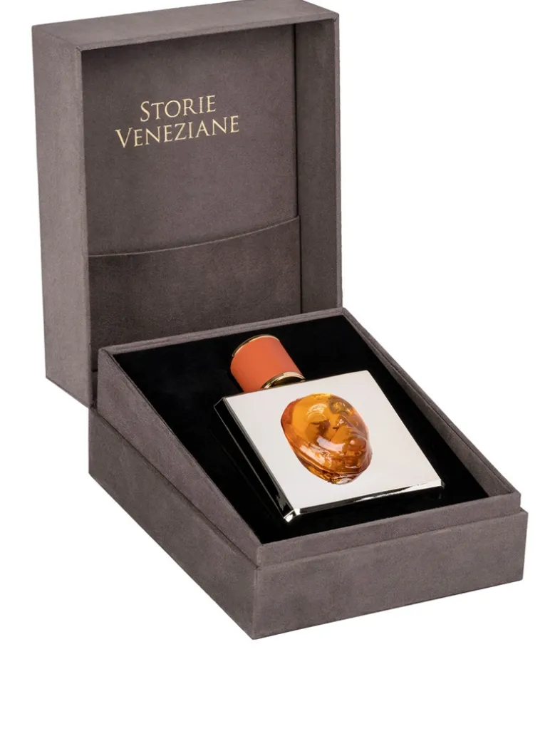 Storie Venezianne by Valmont is a series of five fragrances with bottles adorned with a Murano glass mask. This sensual, mysterious fragrance is charged with minerality. Citrus notes of Cardamom sparkle with sandalwood’s sweet and milky accents, while Amber envelops the composition in a sensual, carnal base note.