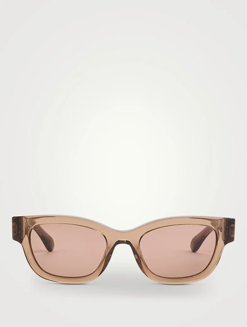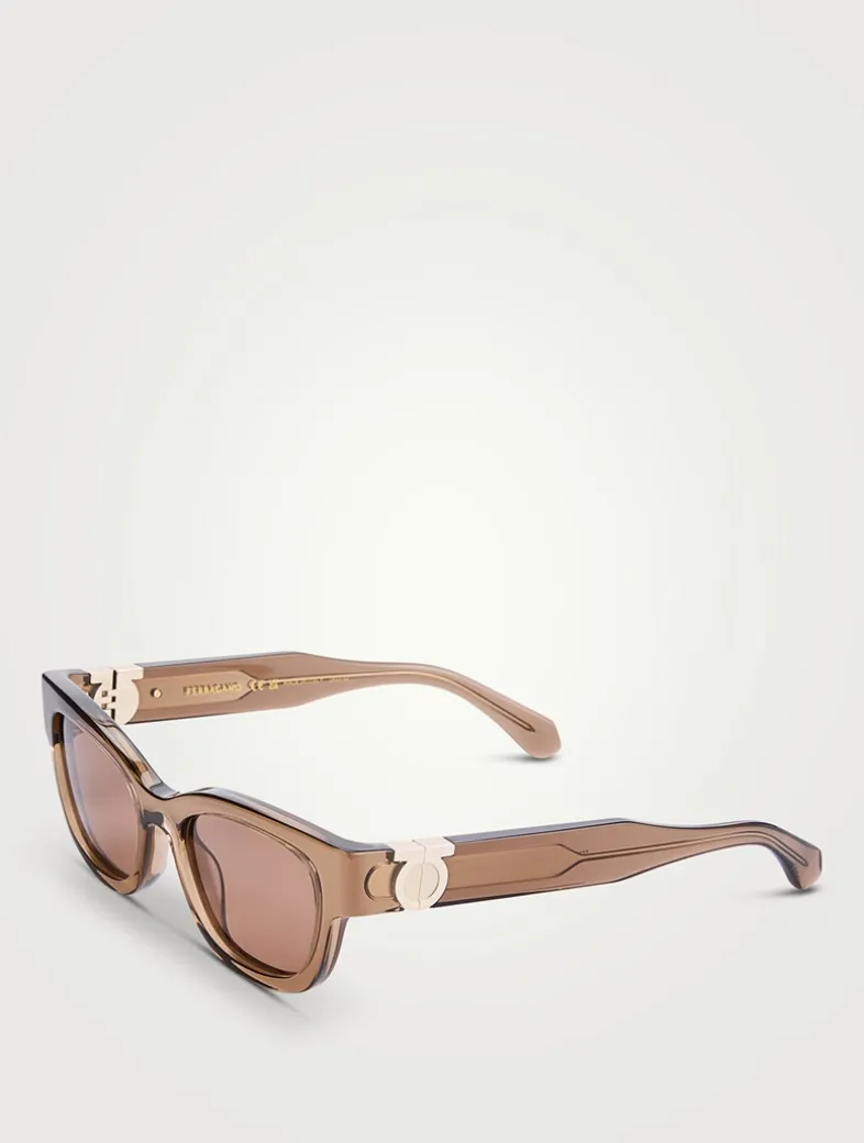The rectangular premium acetate frame offers a comfortable fit. Iconic Gancini details seamlessly integrate the hinges on the temples, which reveal a custom metal core through transparent colour options. Universal M fit. Rx-able.