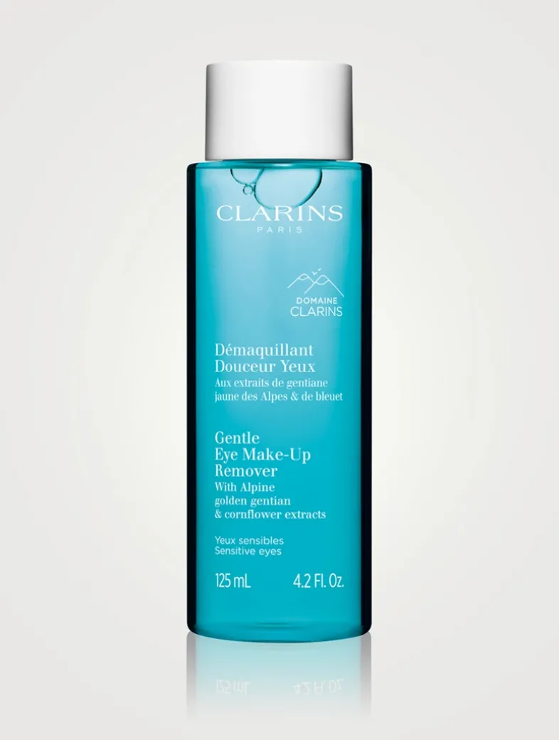 This fresh cleansing lotion for sensitive eyes perfectly and gently removes makeup and impurities while soothing your eyelids. This makeup remover is rich in organic Alpine yellow gentian extract, grown at the heart of the Domaine Clarins, and organic cornflower extract to soothe the skin around the eyes. Ideal for the fragile skin around the eye area. What’s more: it is rich in panthenol, which helps to protect lashes.