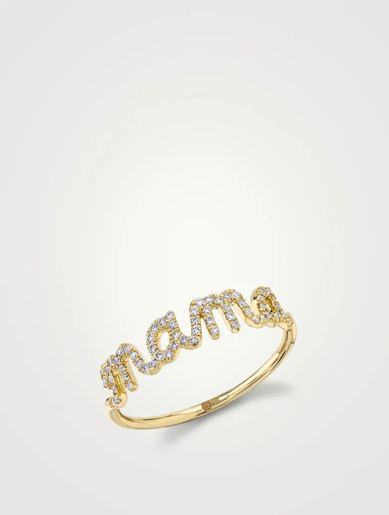 Gold Script Mama Ring With Diamonds